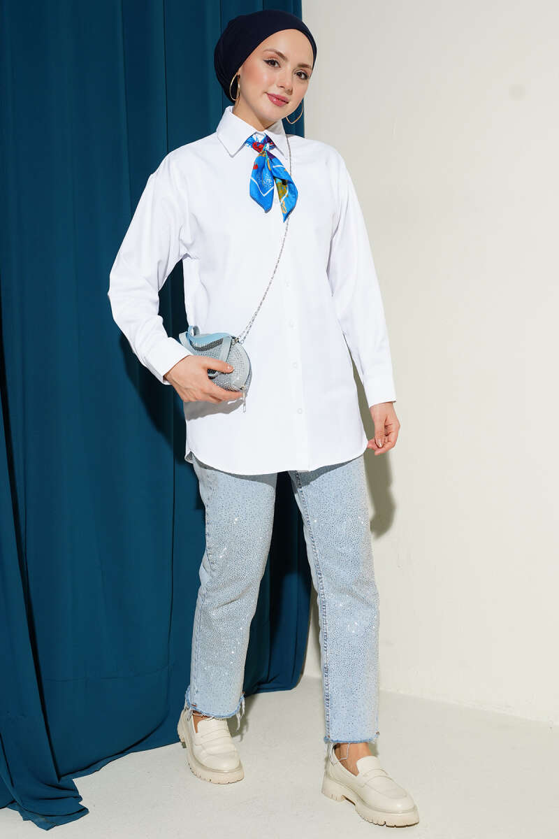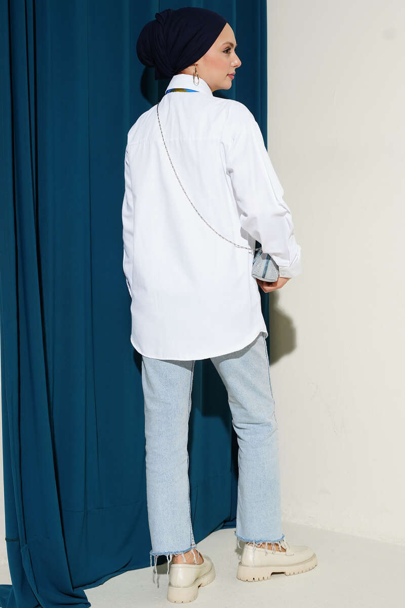 Beli Tünelli Salaş Kısa Gömlek Ekru