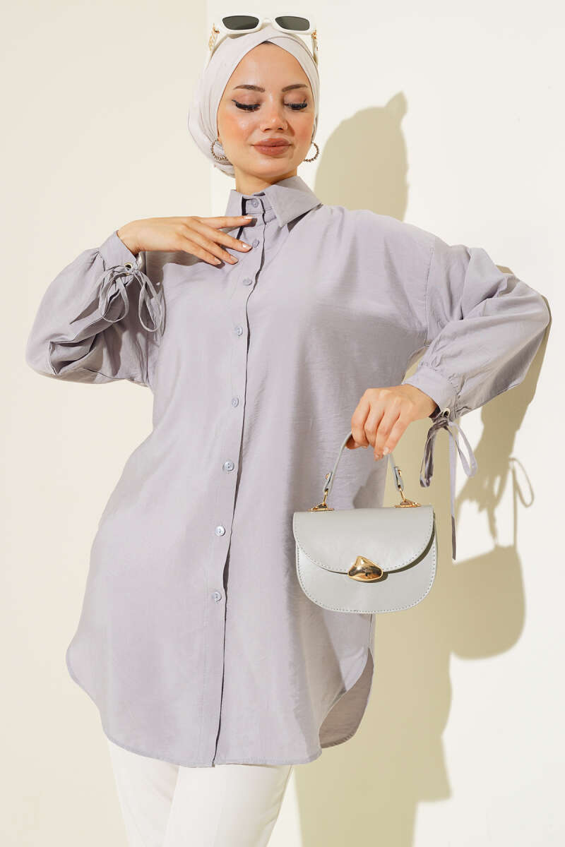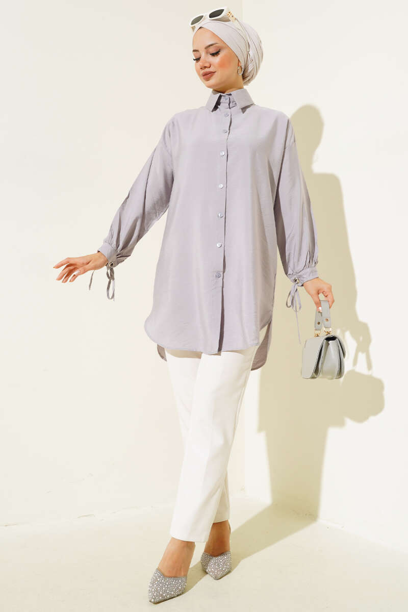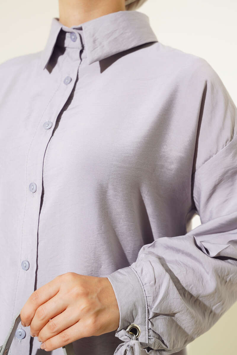 Gizli Düğmeli Bel Kuşaklı Gömlek Pembe
