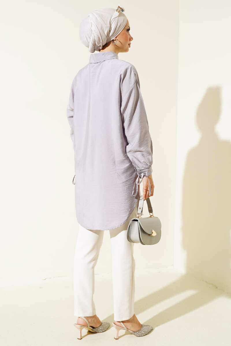 Yaka Bağlamalı Saten Gömlek Beyaz