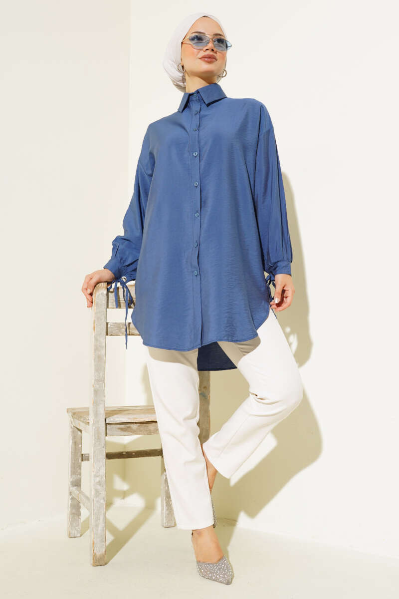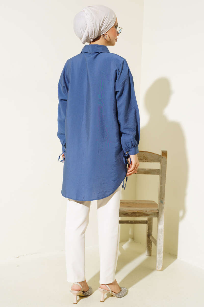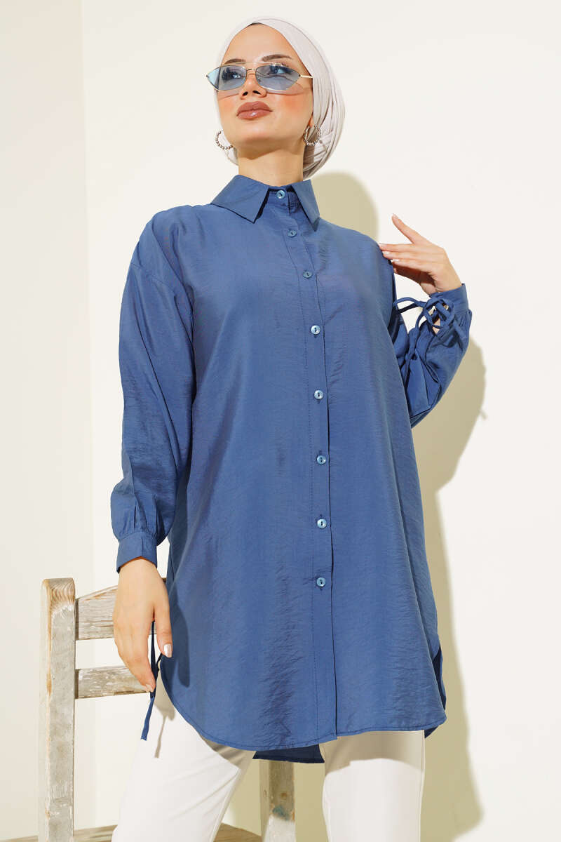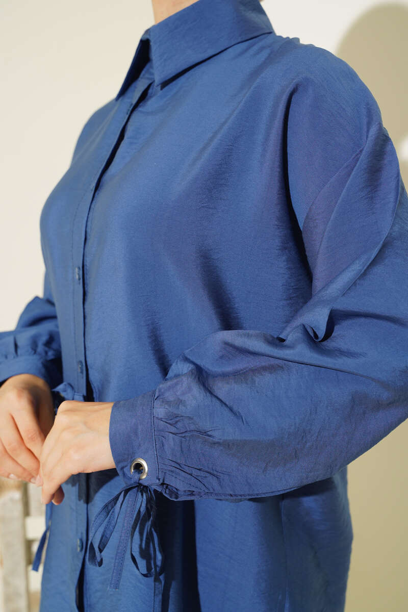 Gizli Düğmeli Bel Kuşaklı Gömlek Bebe Mavi
