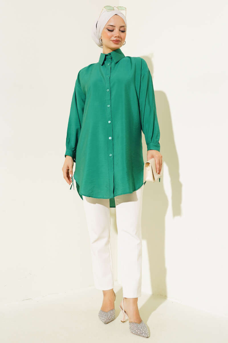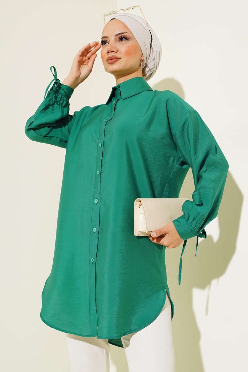Yaka Bağlamalı Saten Gömlek Yeşil