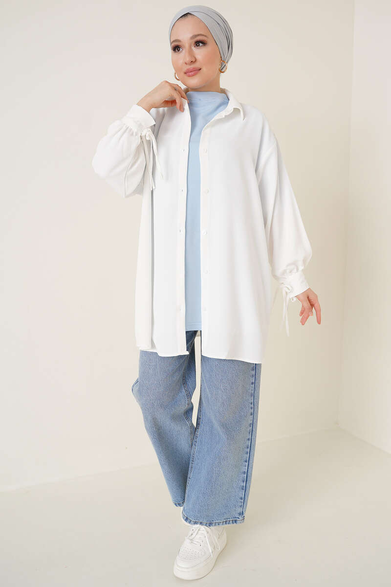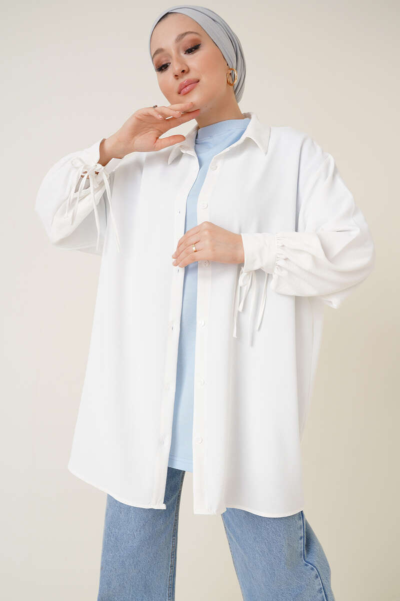 Manşetleri Bağcıklı Ayrobin Gömlek Ekru
