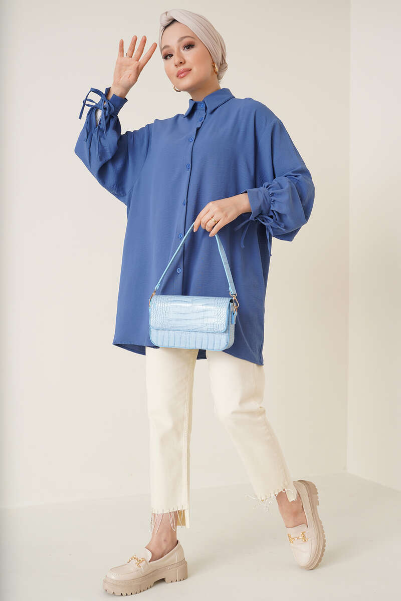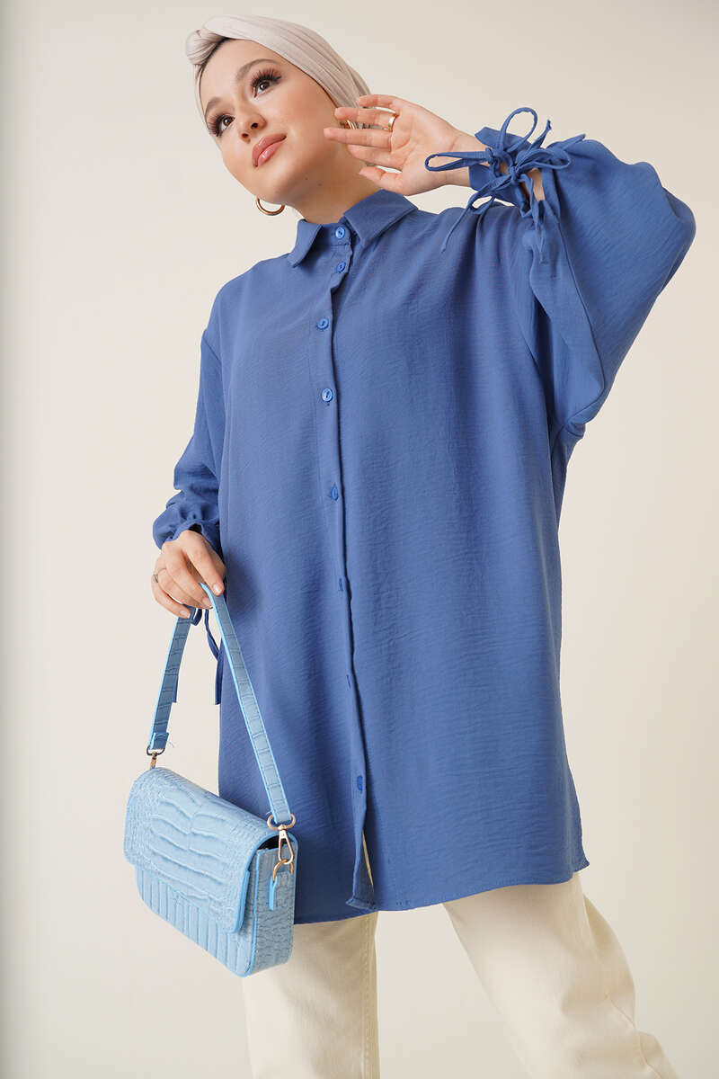 Yeni sezon ayrobin gömleğimiz bilek manşetlerinde bulunan çift bağcıklarıyla farklı bir tasarıma imza atmıştır. Düşük omuz model olan gömleğimiz salaş görünümü ve renkleriyle bu yaz favoriniz olmaya aday.