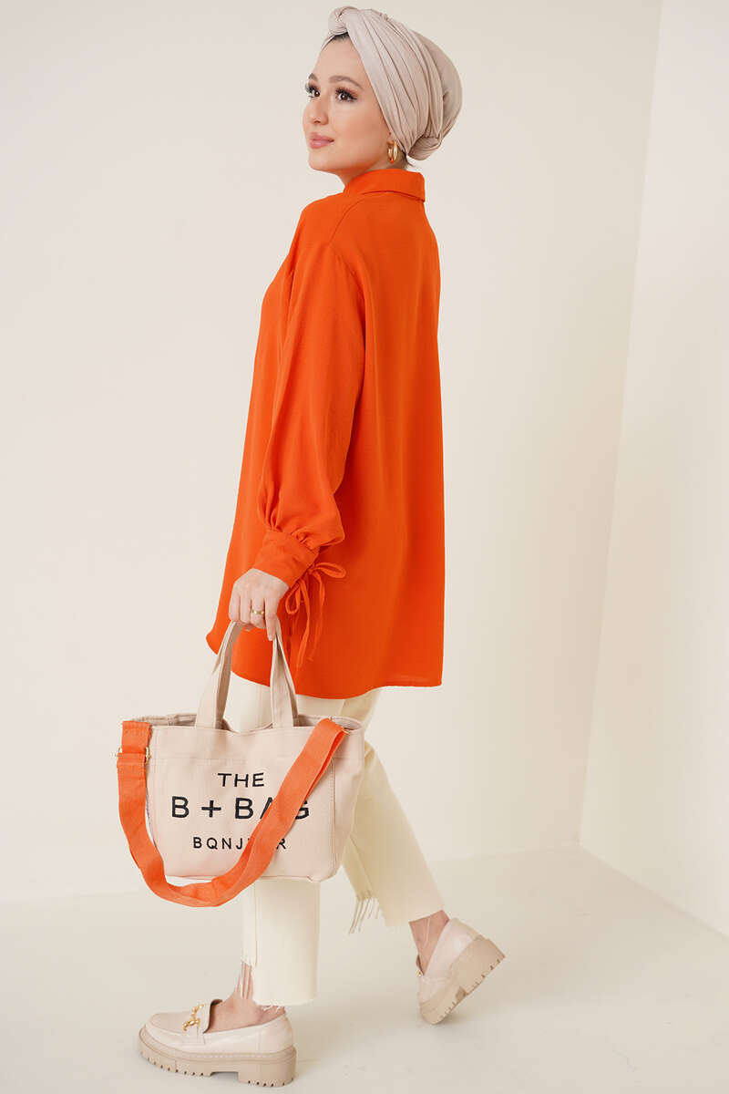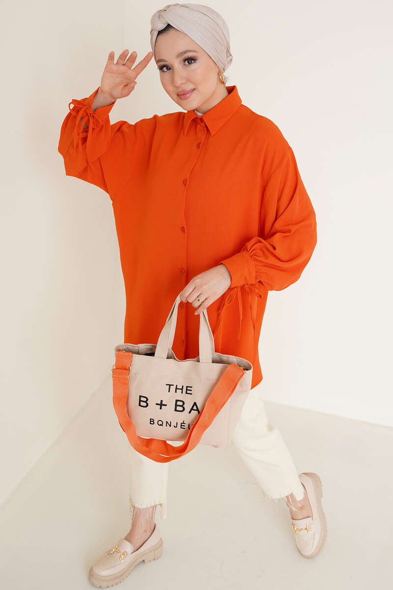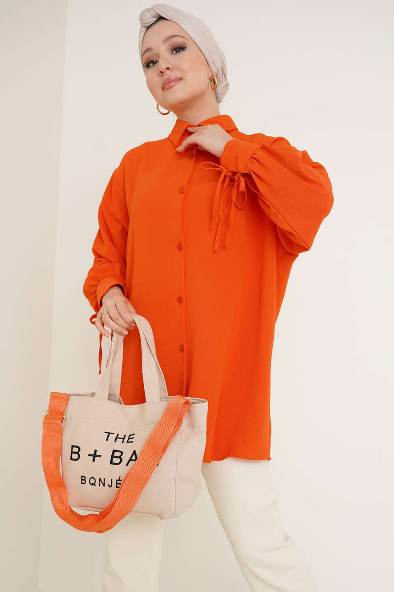 Manşetleri Bağcıklı Ayrobin Gömlek Oranj