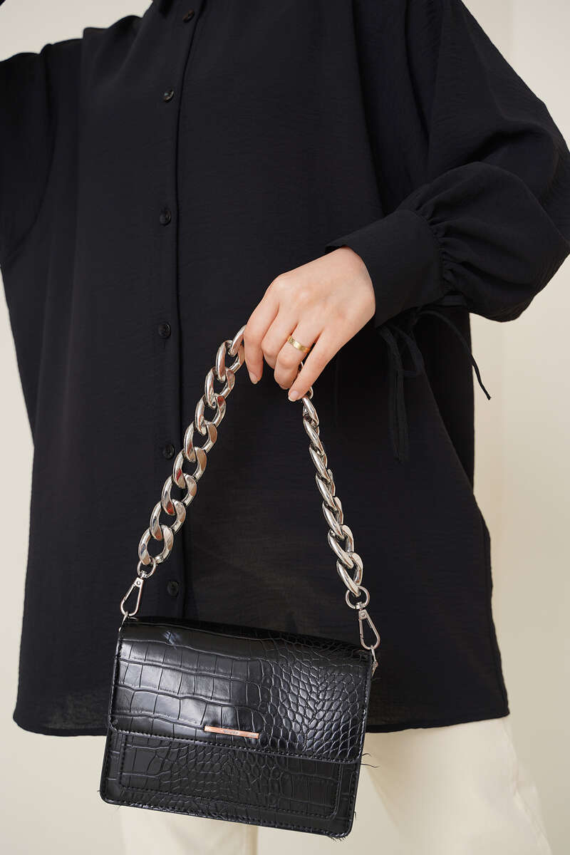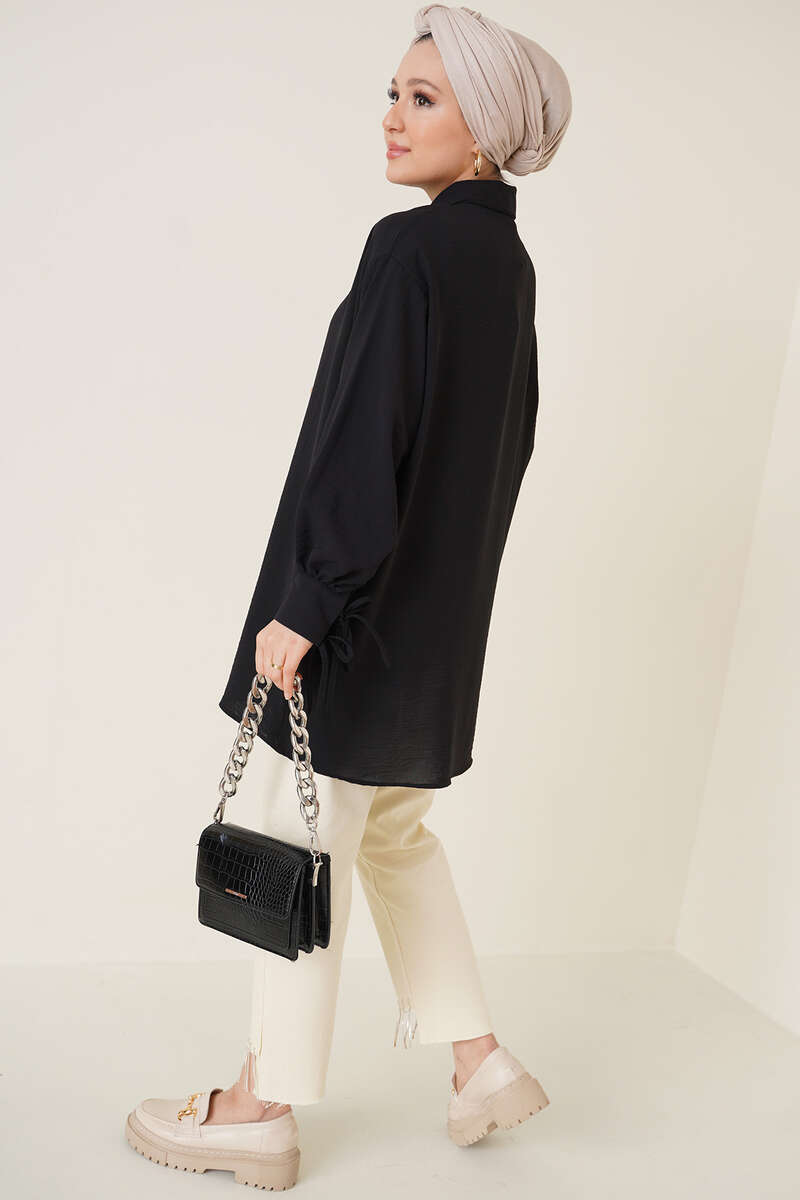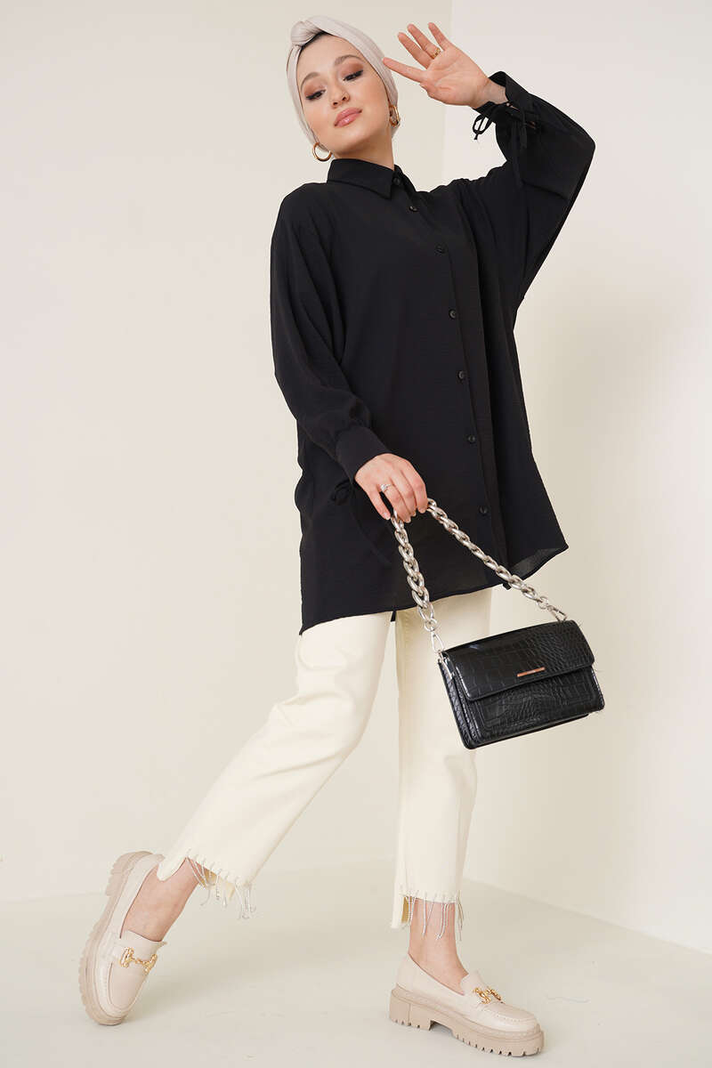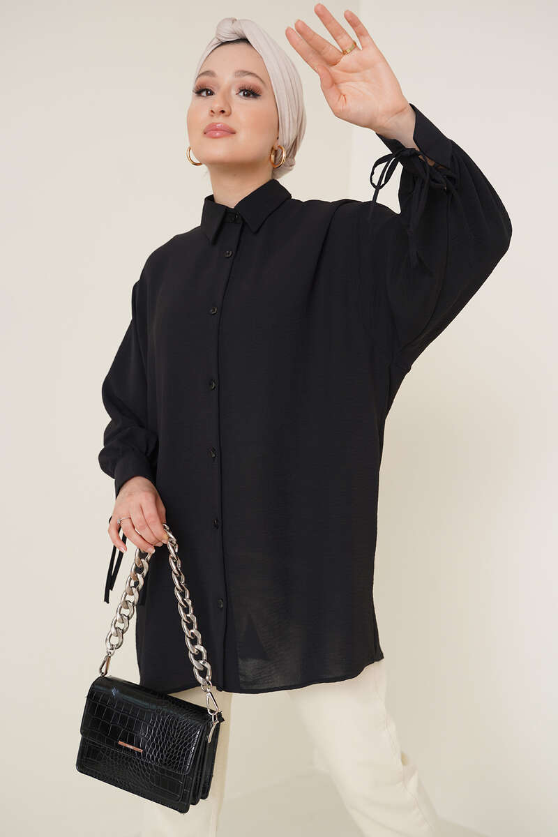 Manşetleri Bağcıklı Ayrobin Gömlek Siyah
