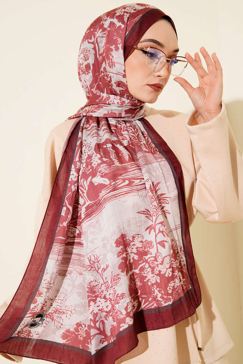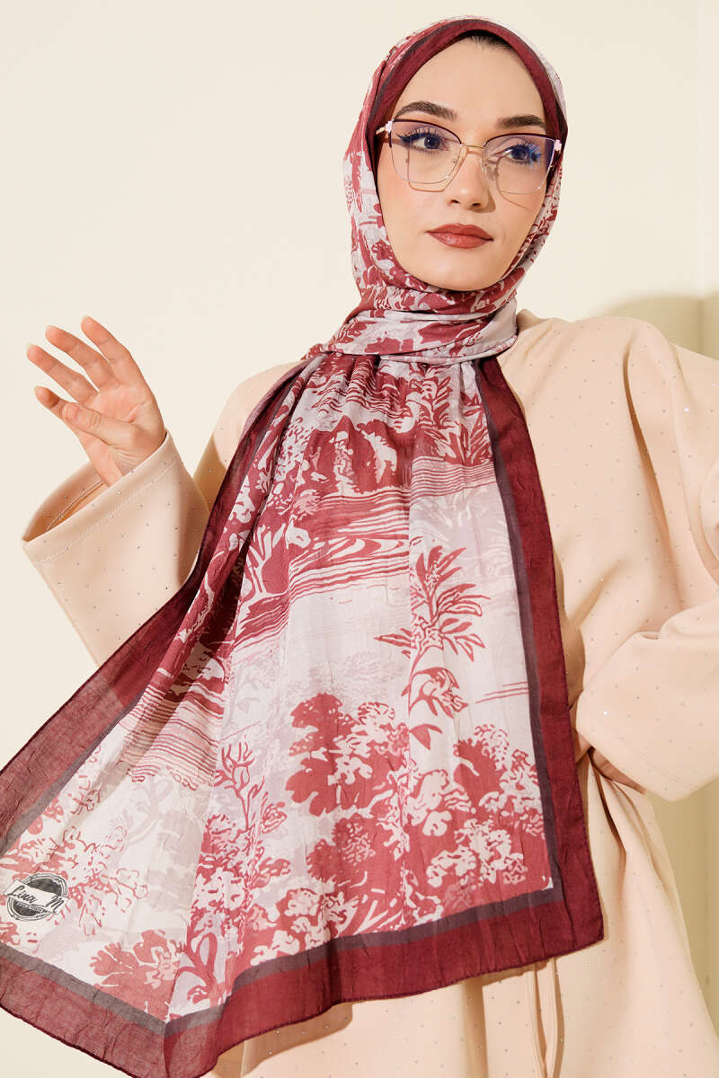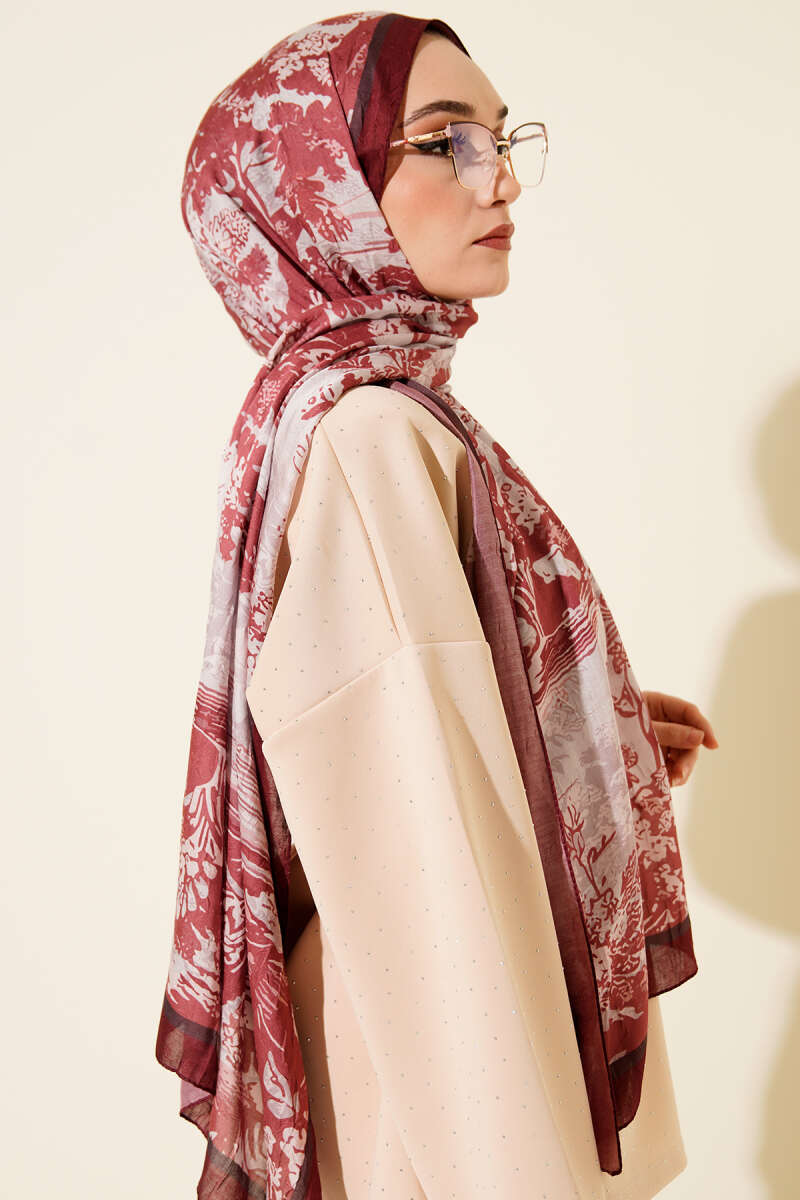 Şeritli Bambu Kraş Eşarp Vizon