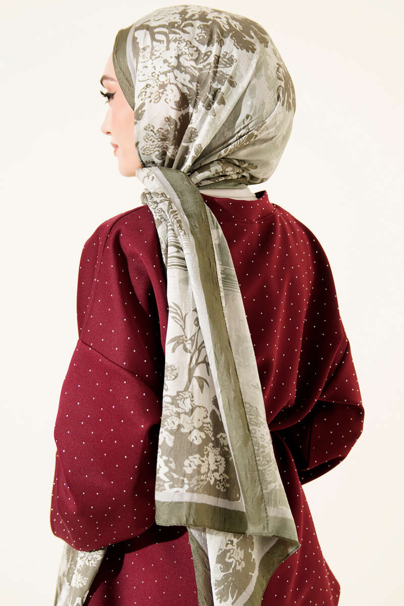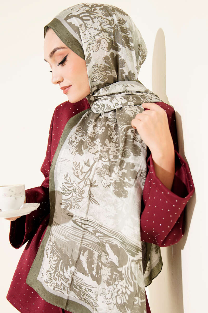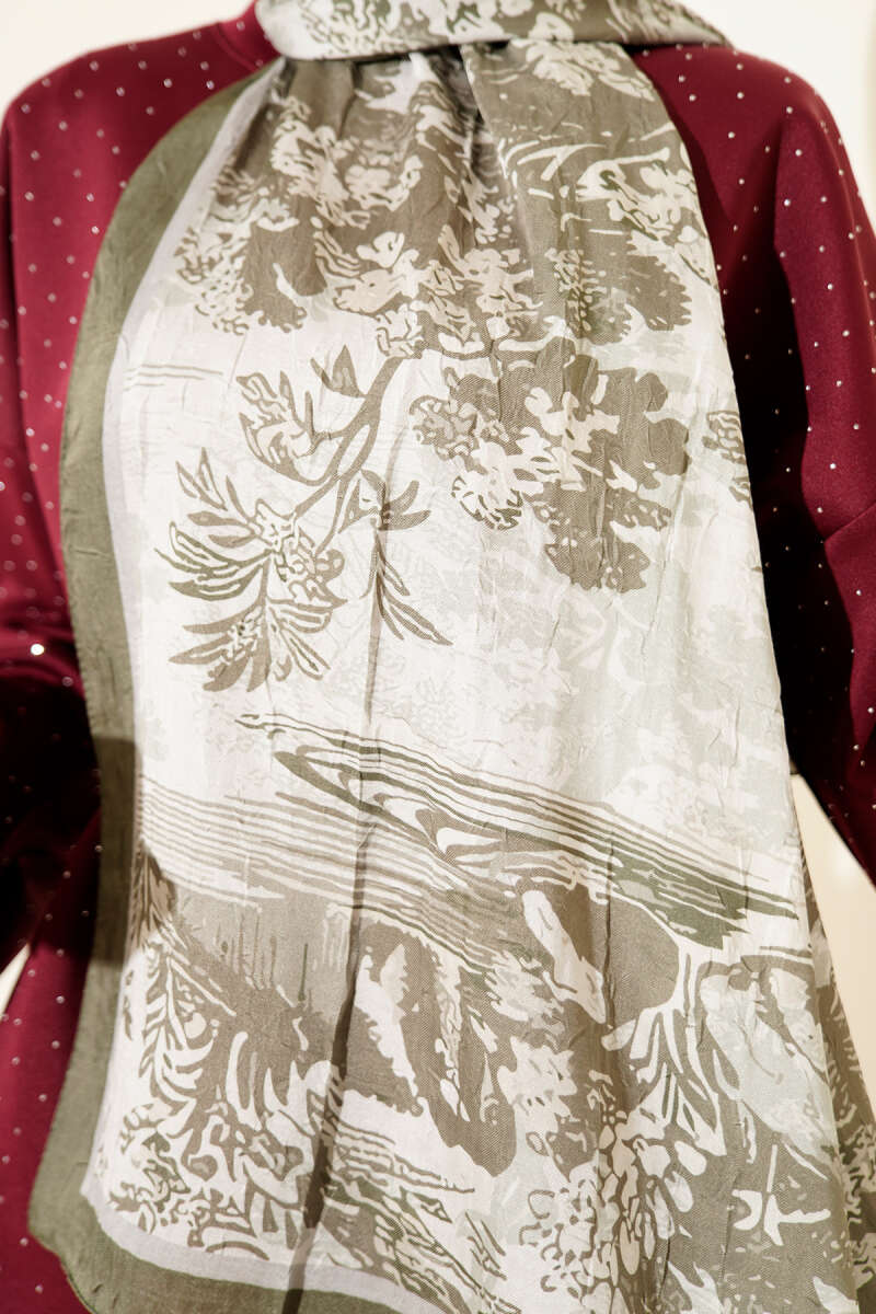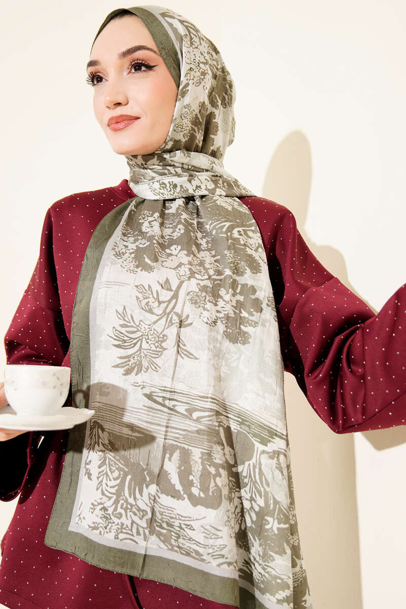 Şeritli Bambu Kraş Eşarp Turkuaz