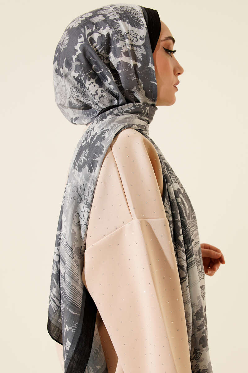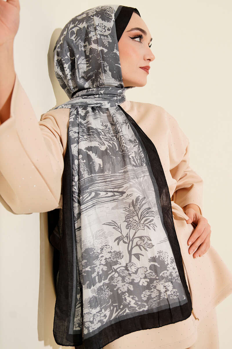 Şeritli Bambu Kraş Eşarp Turkuaz