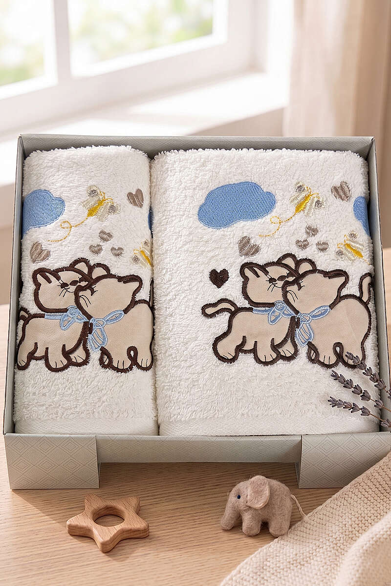 Masal Serisi 2'li Bebek Havlu Seti Ekru