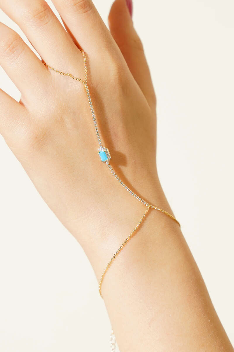 Mavi Baget Taş Detaylı Işıltılı Su Yolu Şahmeran Gold