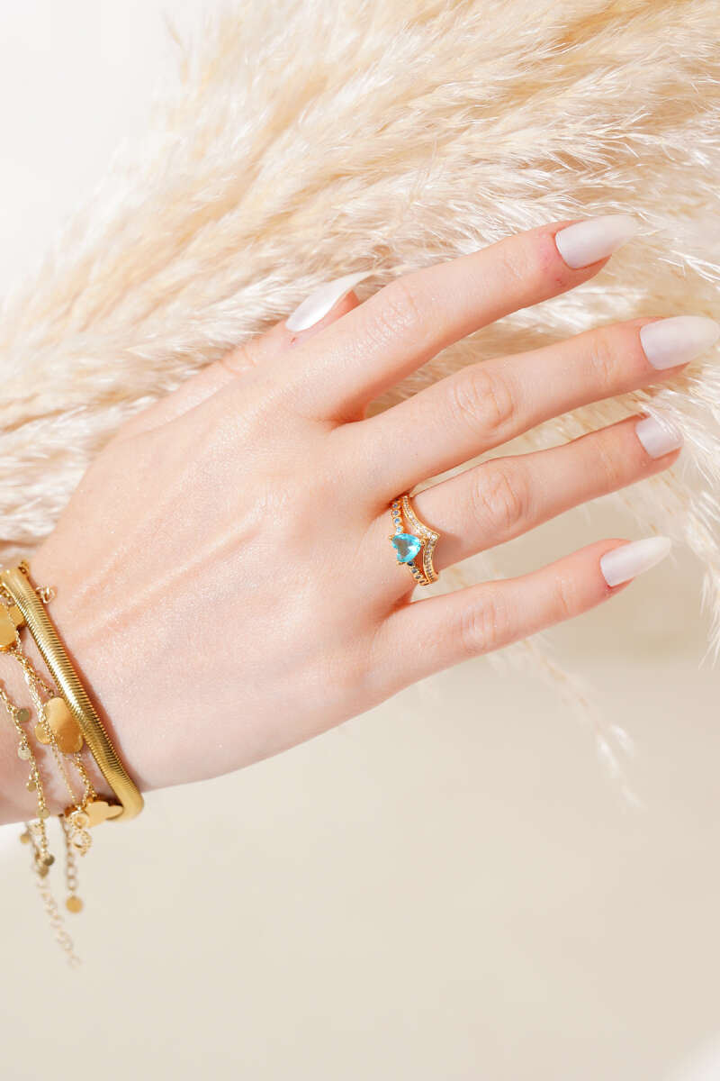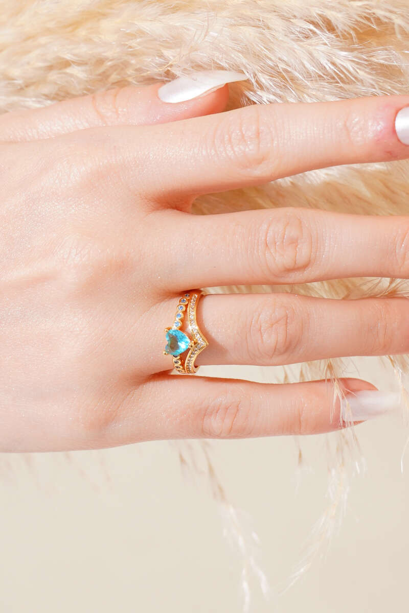 Mavi Kalpli Taşlı Yüzük Gold