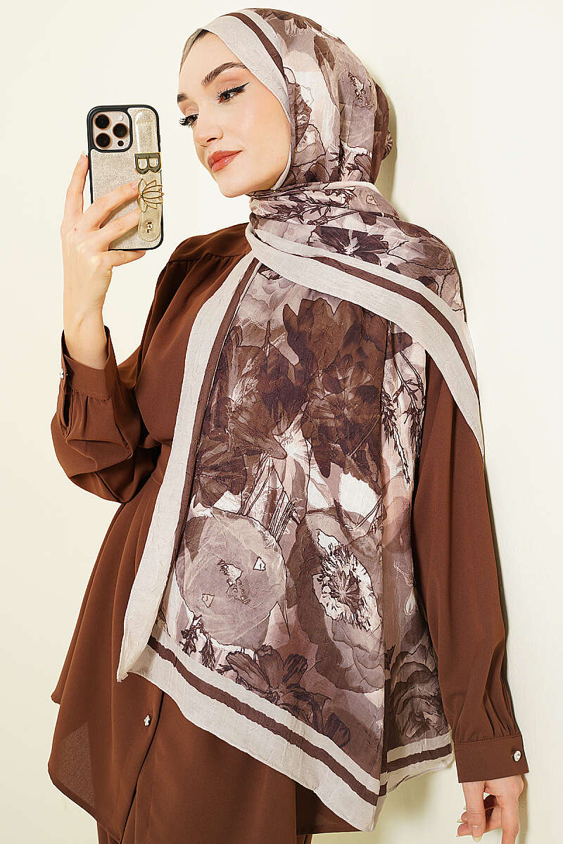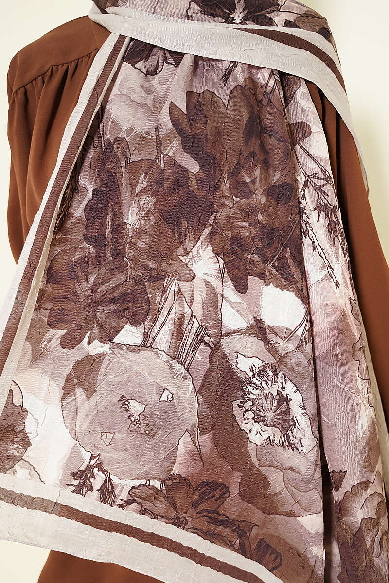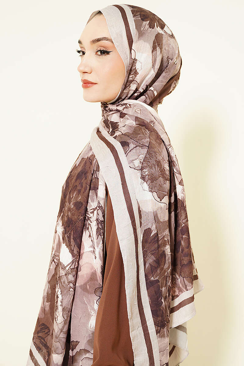 Lale Desen Bambu Kraş Eşarp Soft Kahve