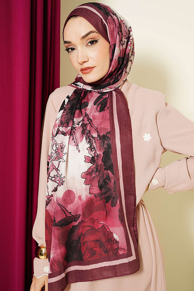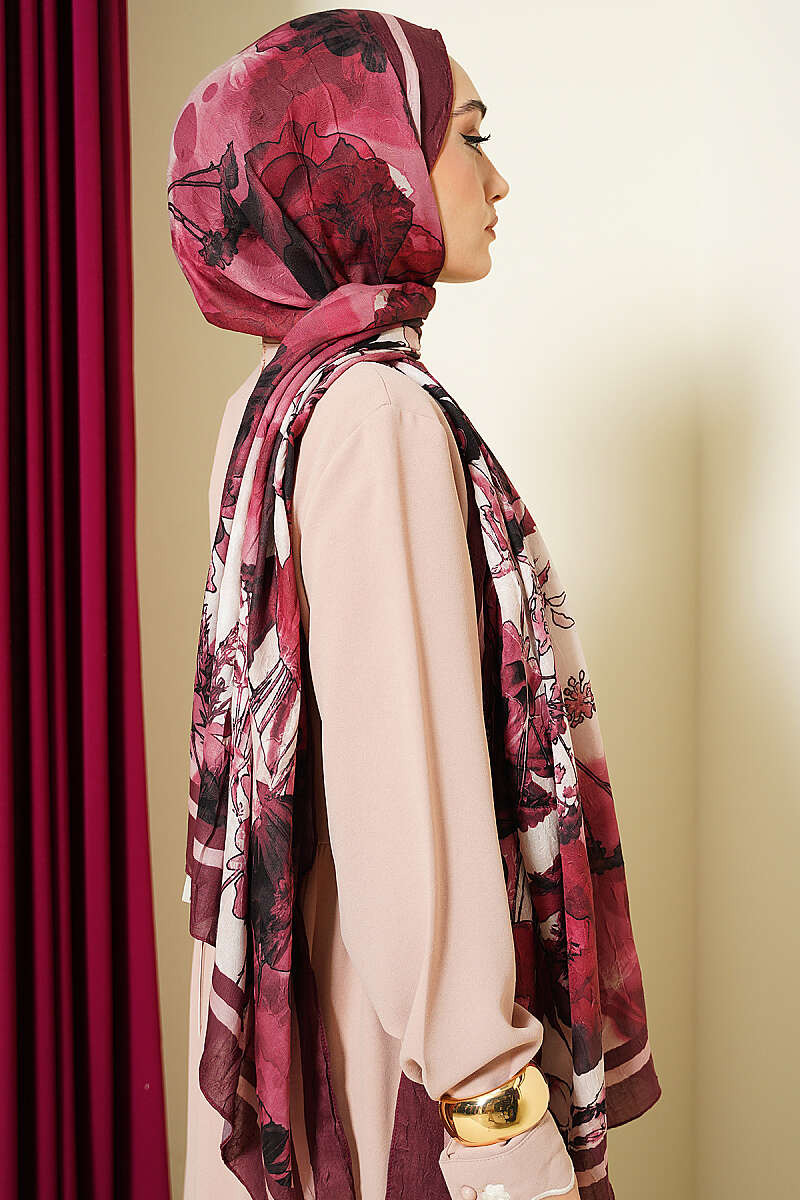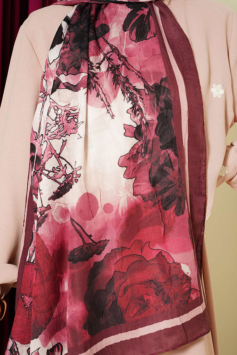 Lale Desen Bambu Kraş Eşarp Mürdüm
