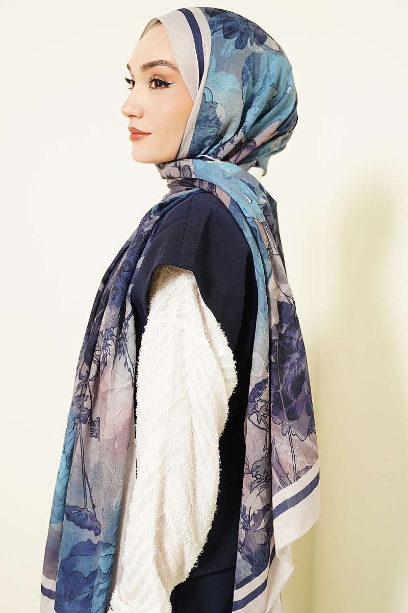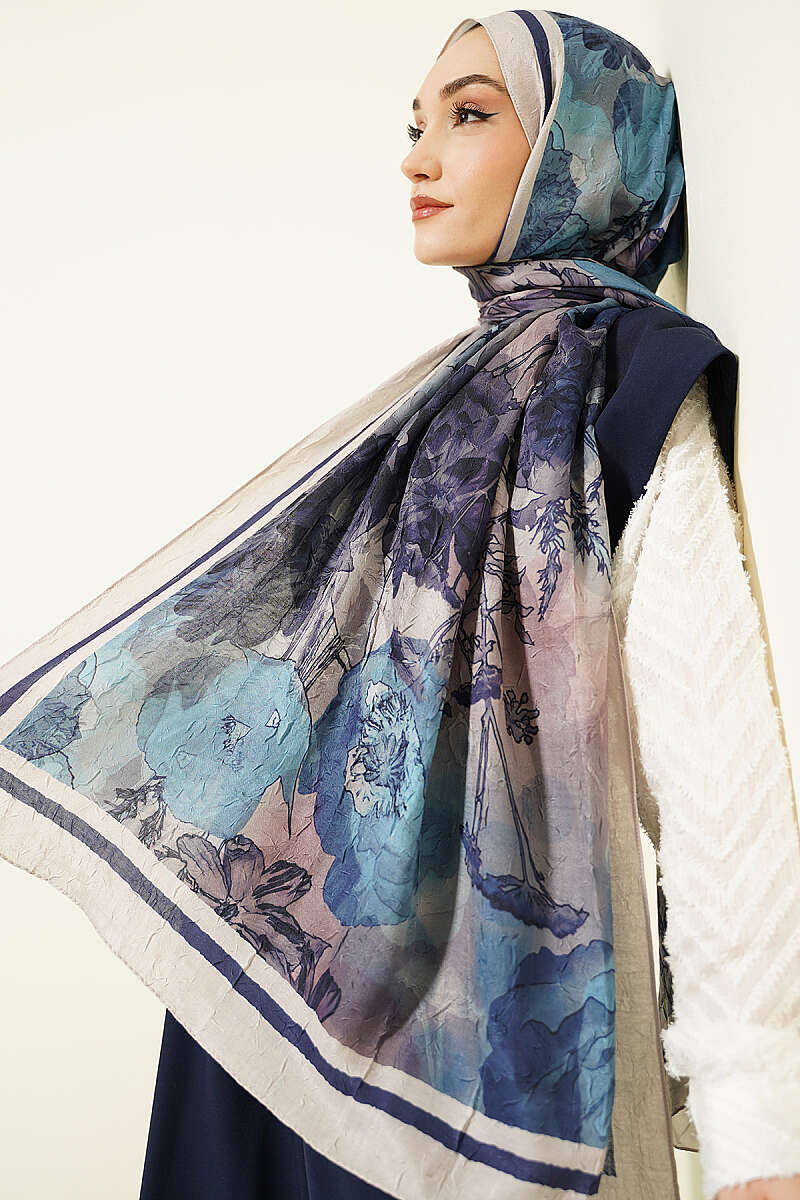 Lale Desen Bambu Kraş Eşarp Kum Bej