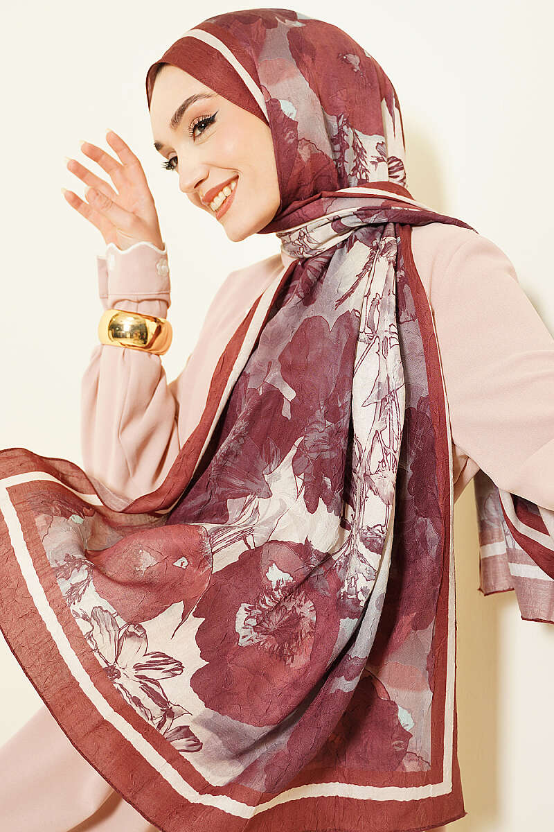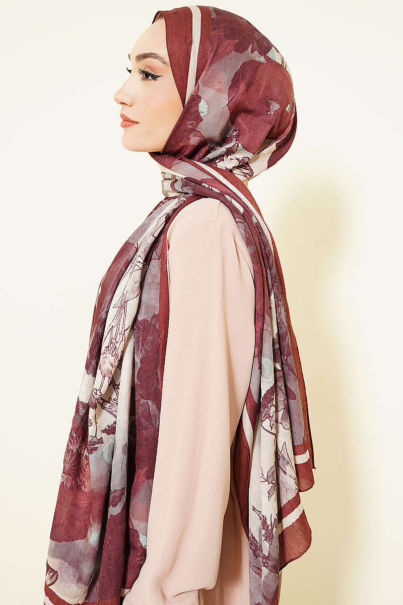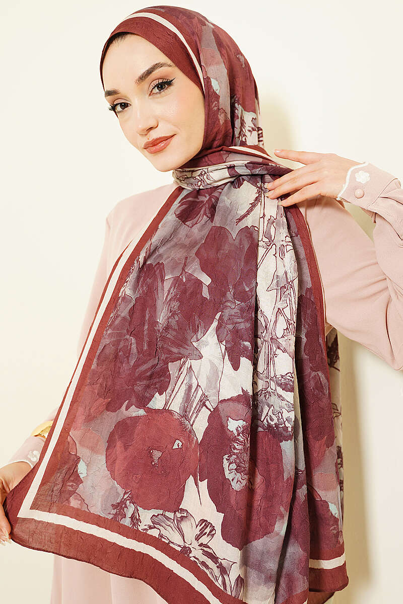 Lale Desen Bambu Kraş Eşarp Mürdüm