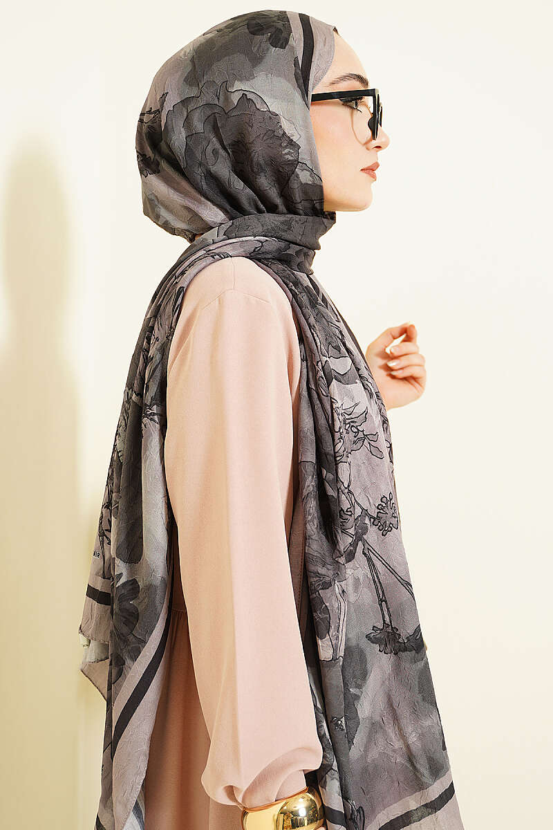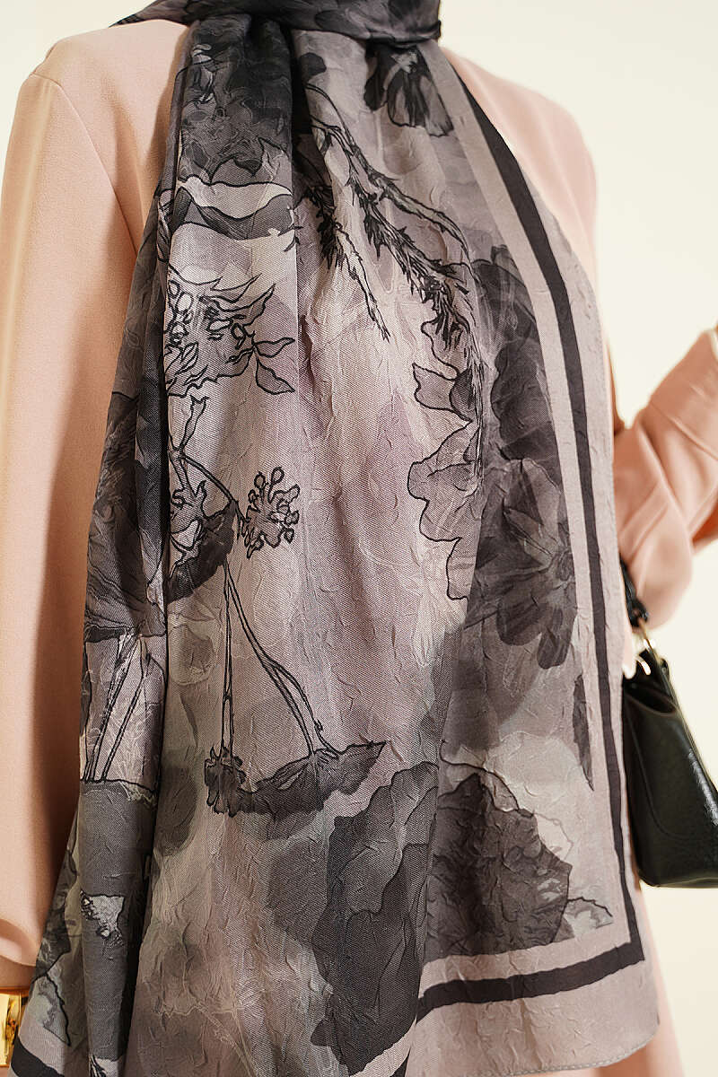 Lale Desen Bambu Kraş Eşarp Antrasit