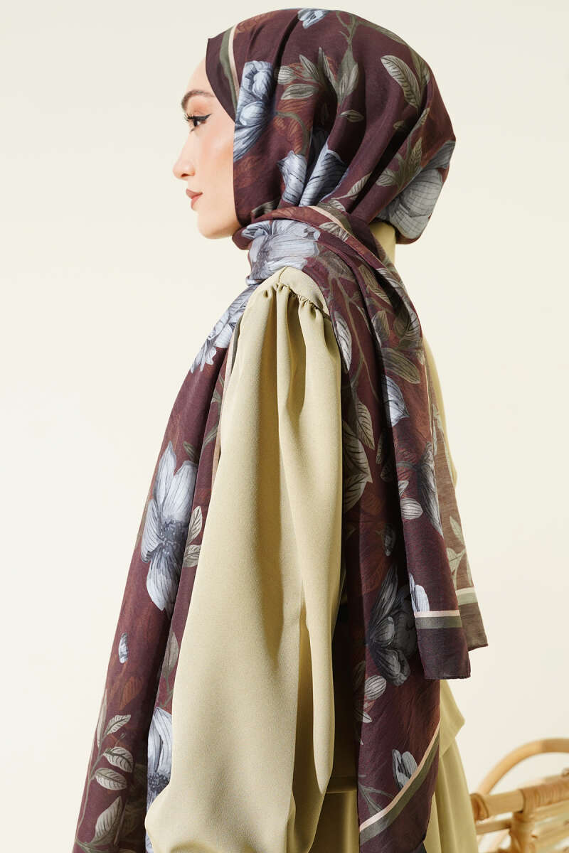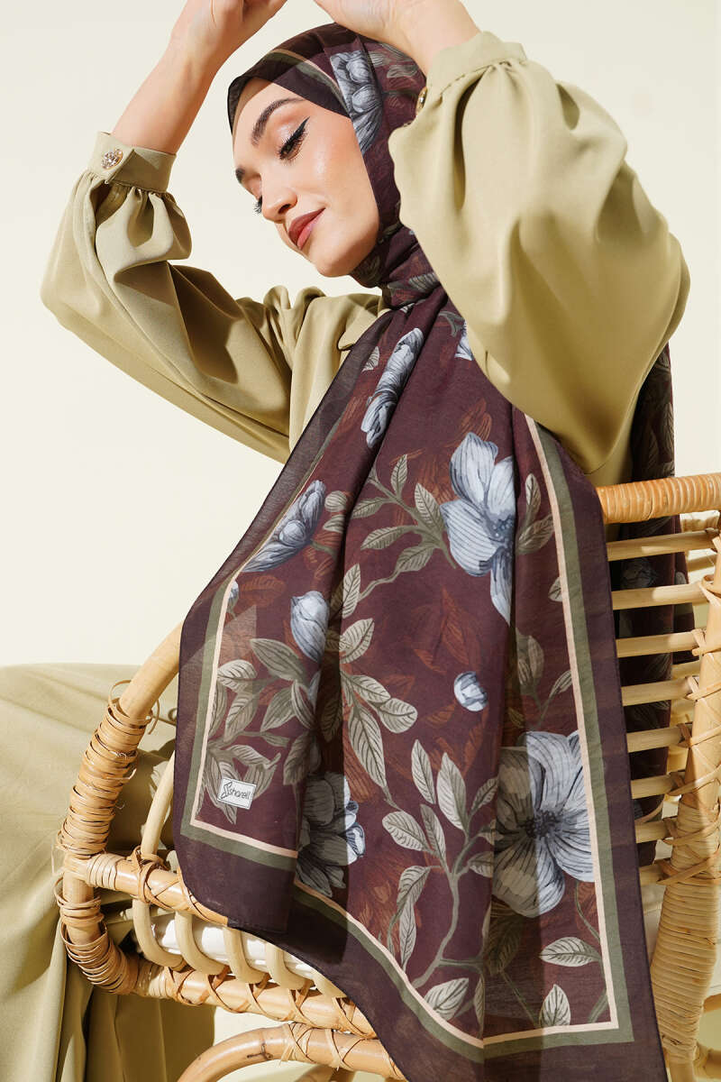 Çiçekli Soft Bambu Kraş Şal Haki