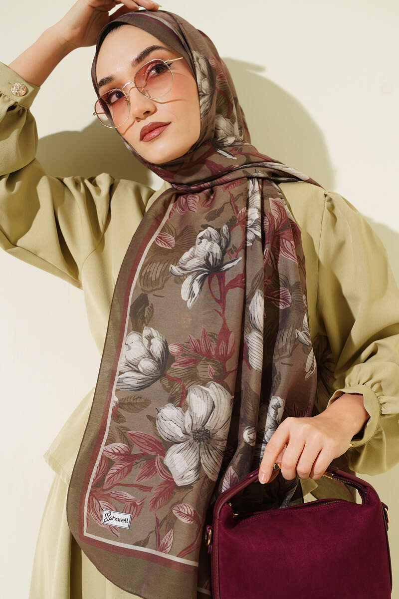 Menekşe Desen Modal Şal Acı Kahve