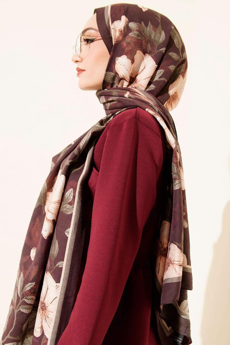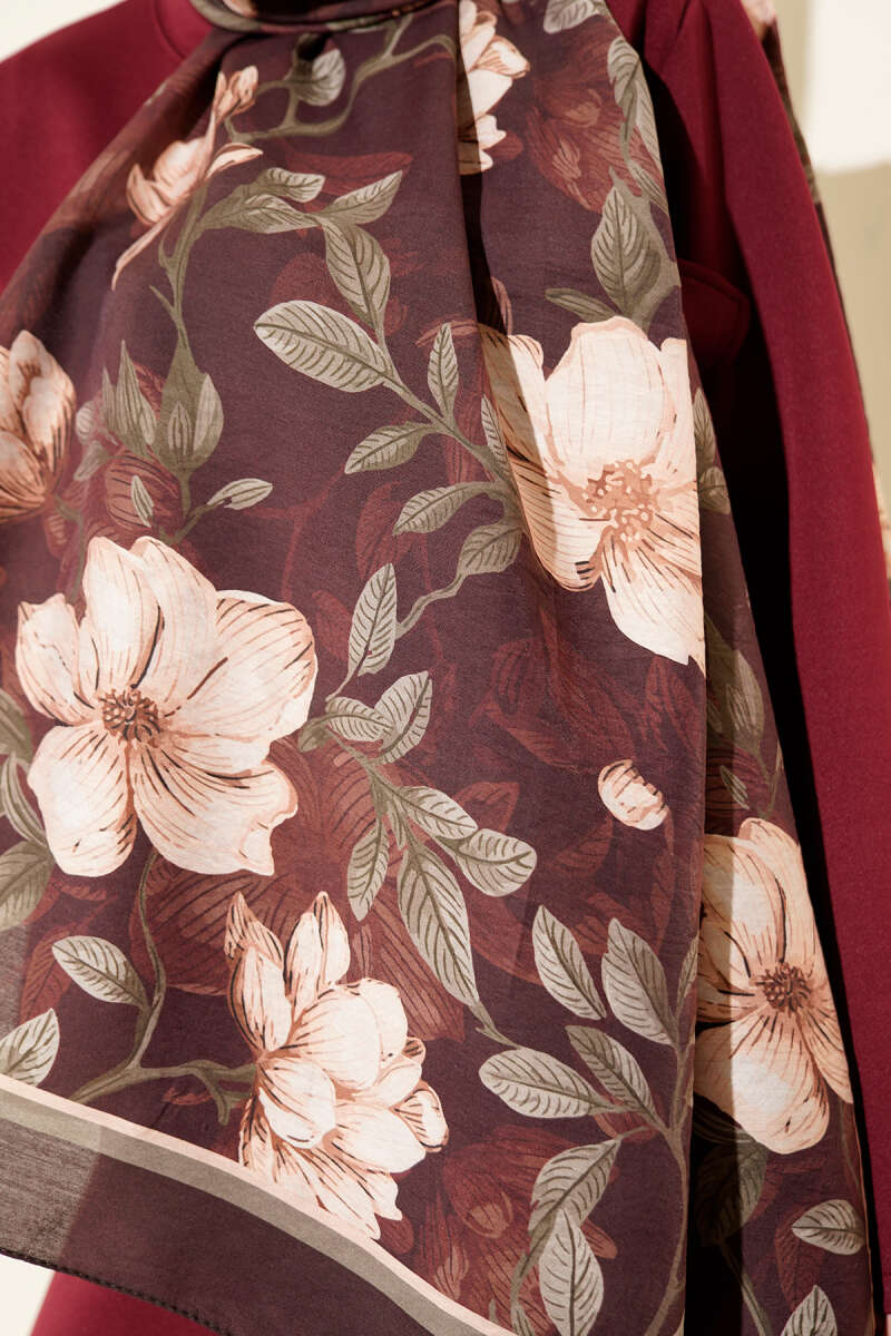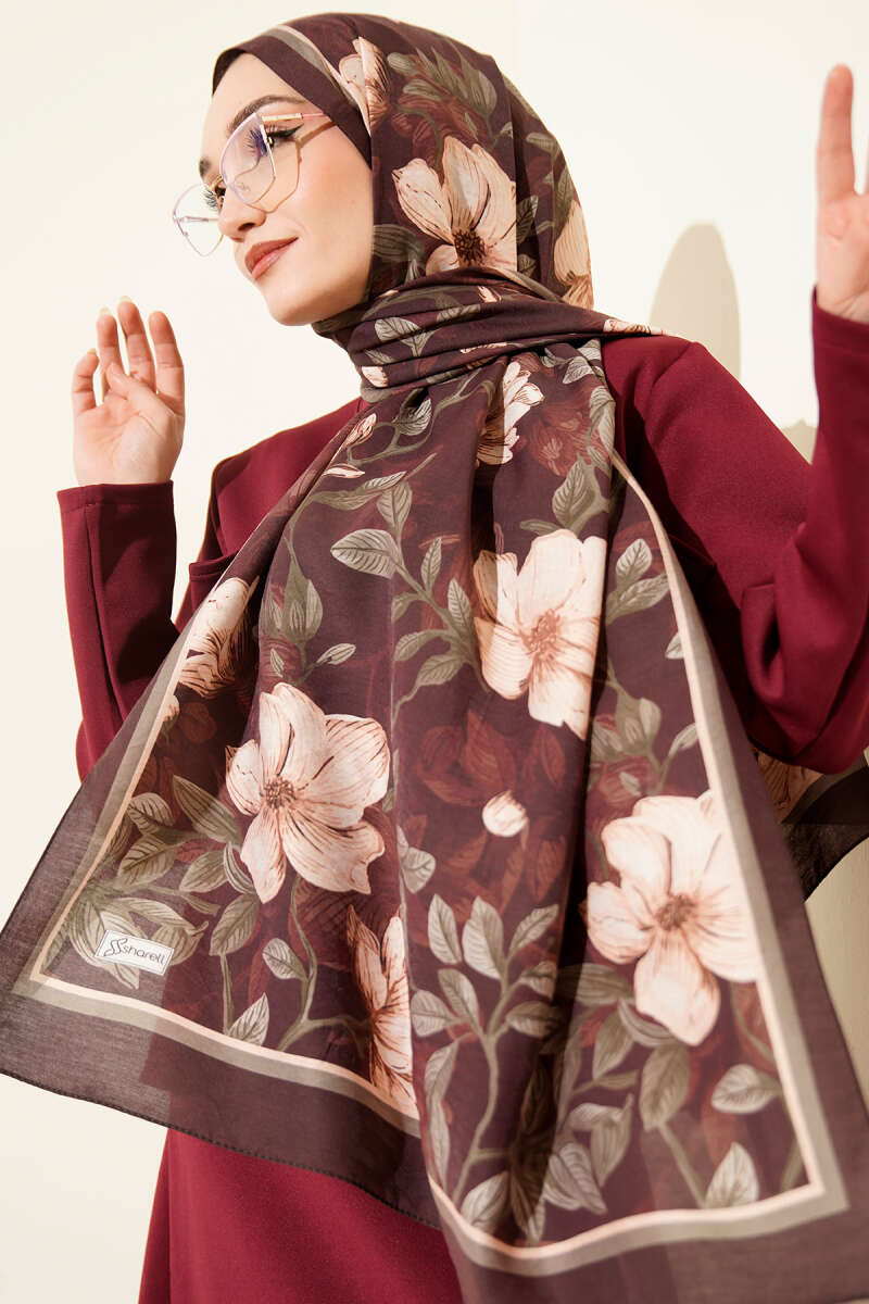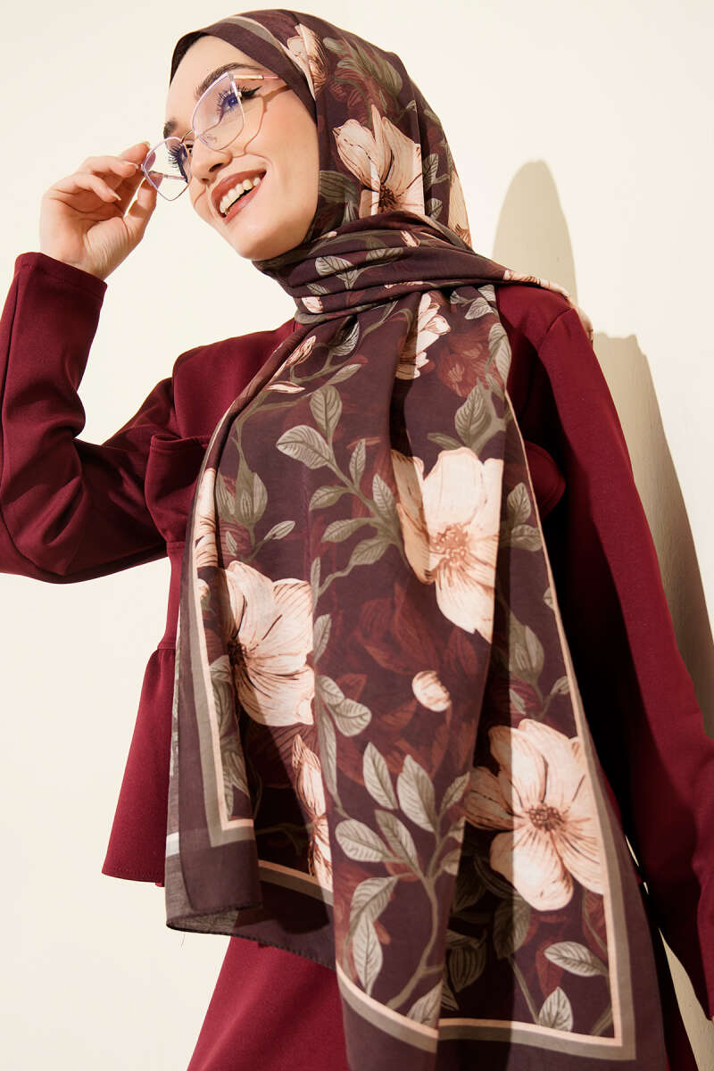 Menekşe Desen Modal Şal Kestane