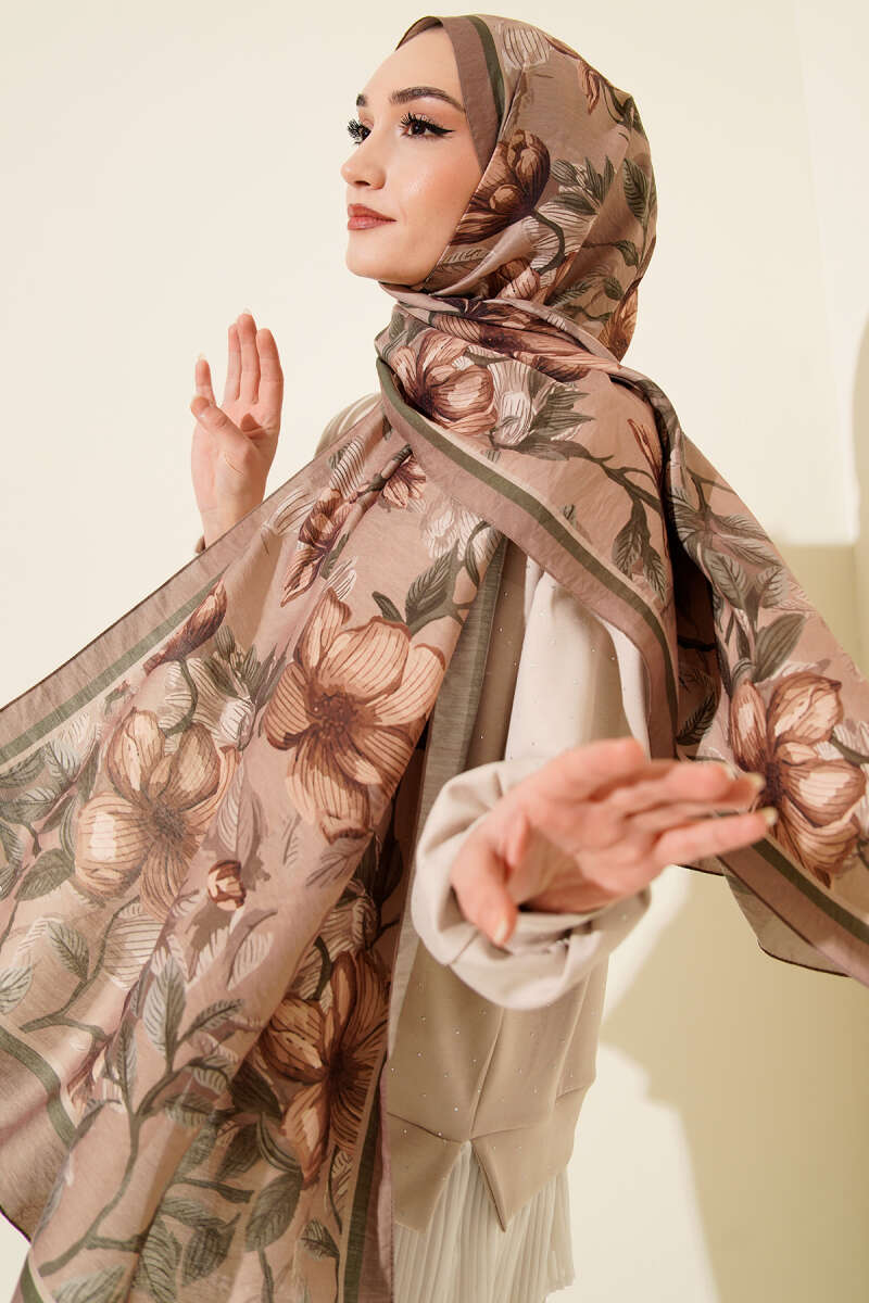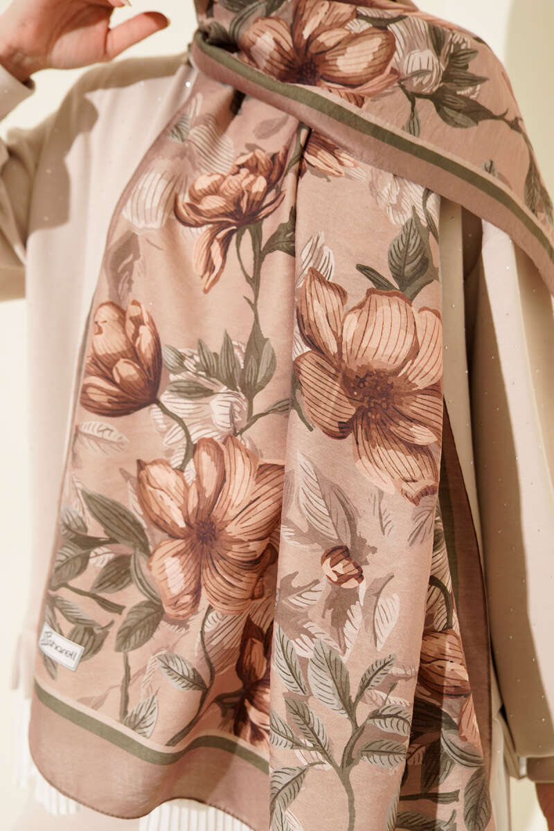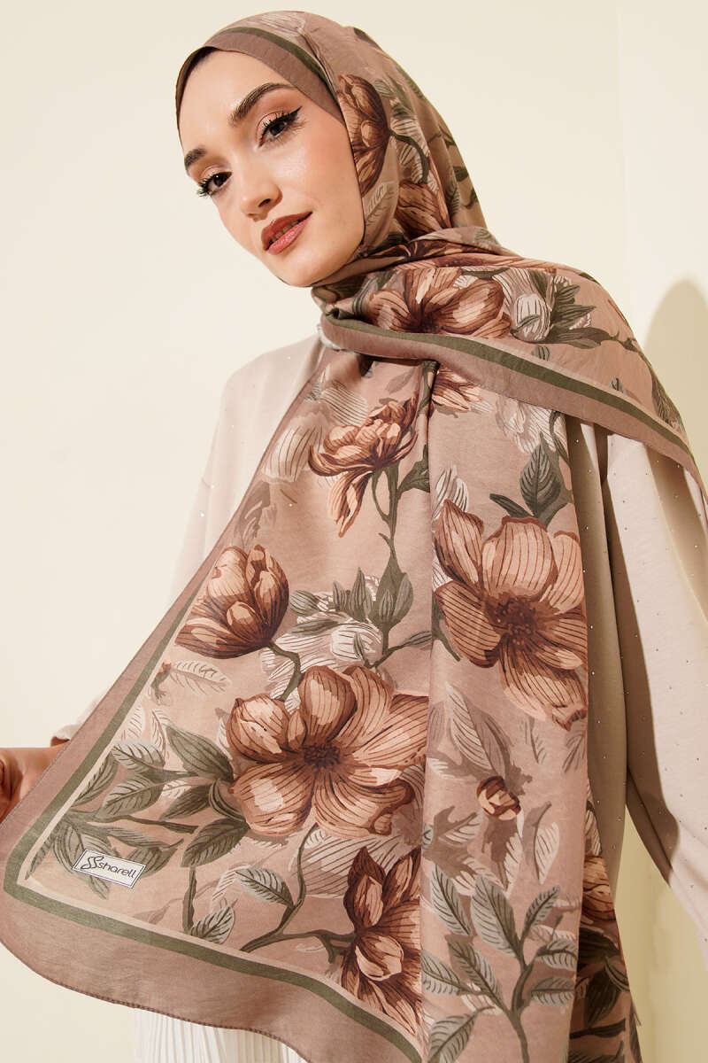 Menekşe Desen Modal Şal Kestane