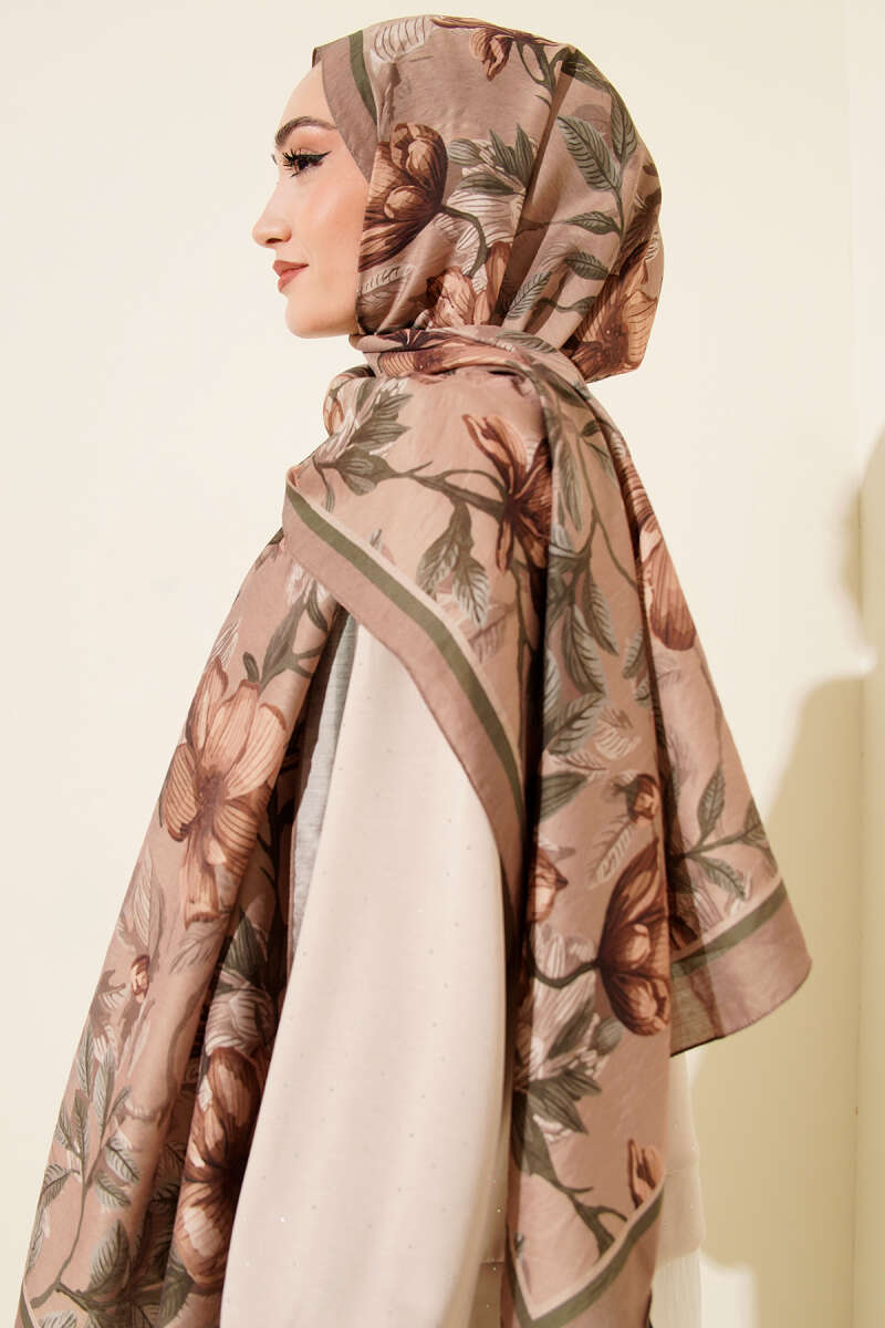 Menekşe Desen Modal Şal Koyu Kahve