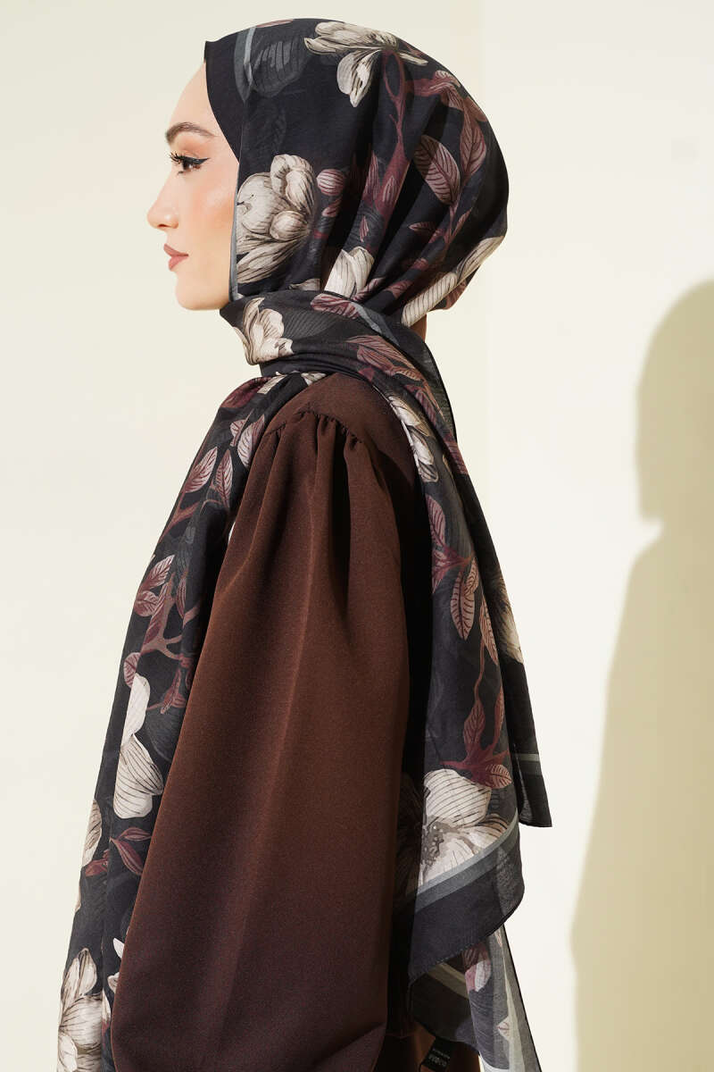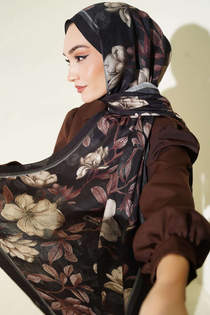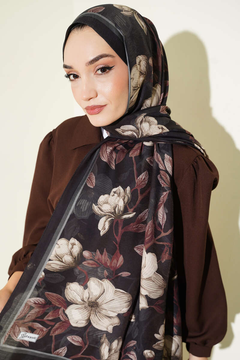 Çiçekli Soft Bambu Kraş Şal Haki