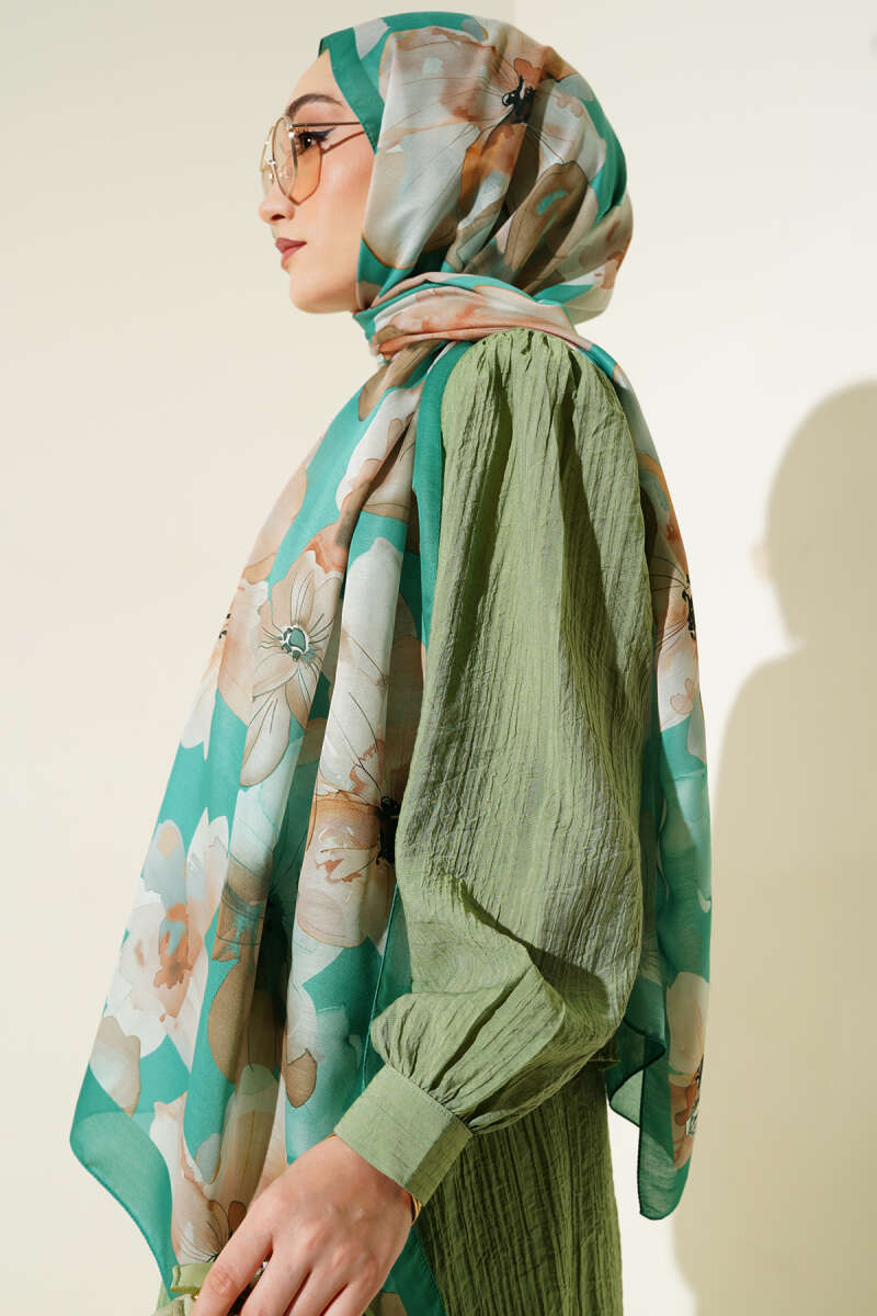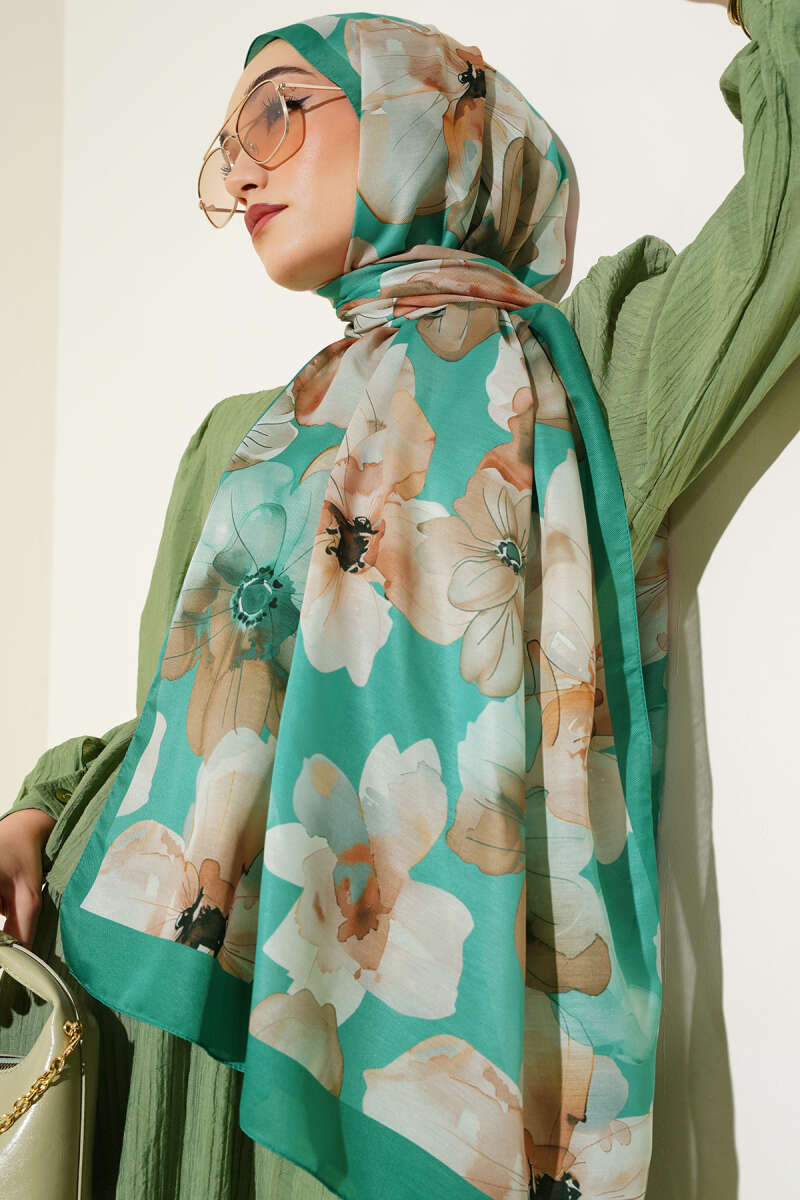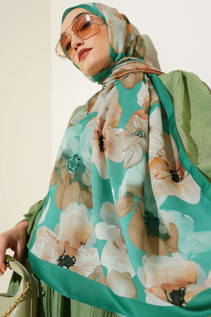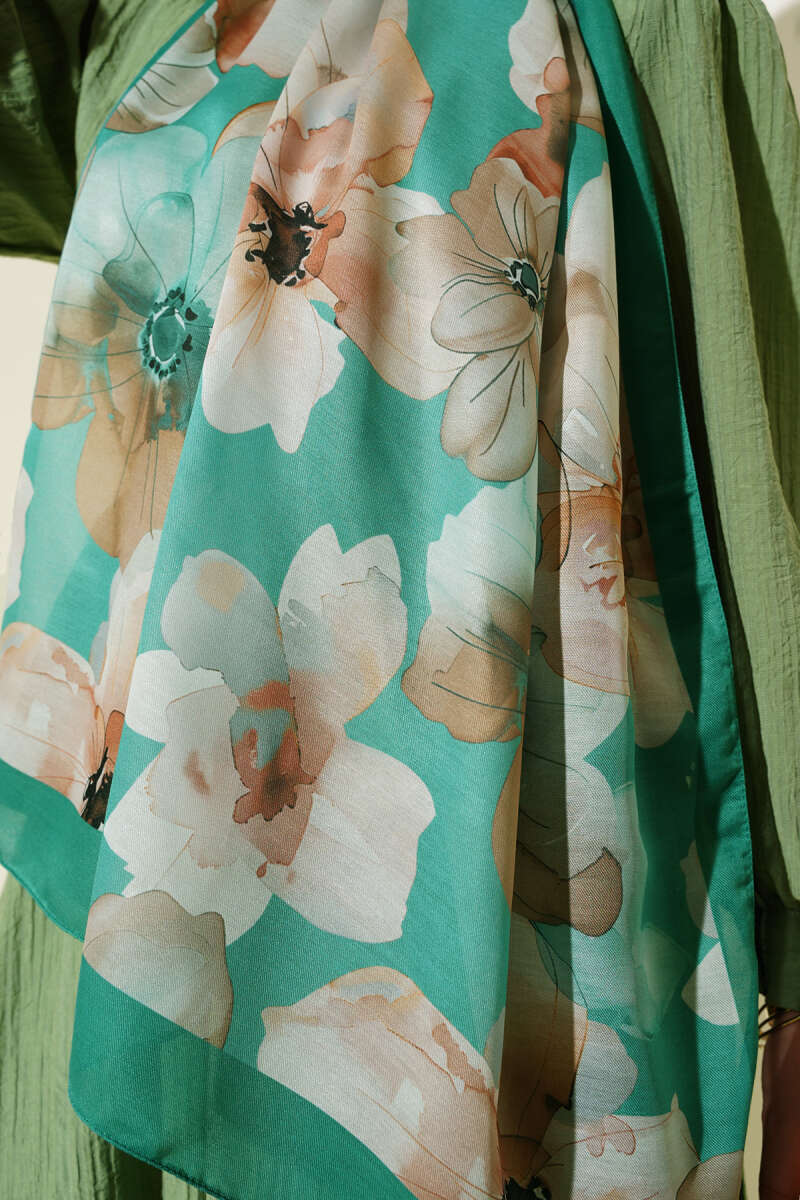Çiçekli Bambu Kraş Şal Soft Mavi