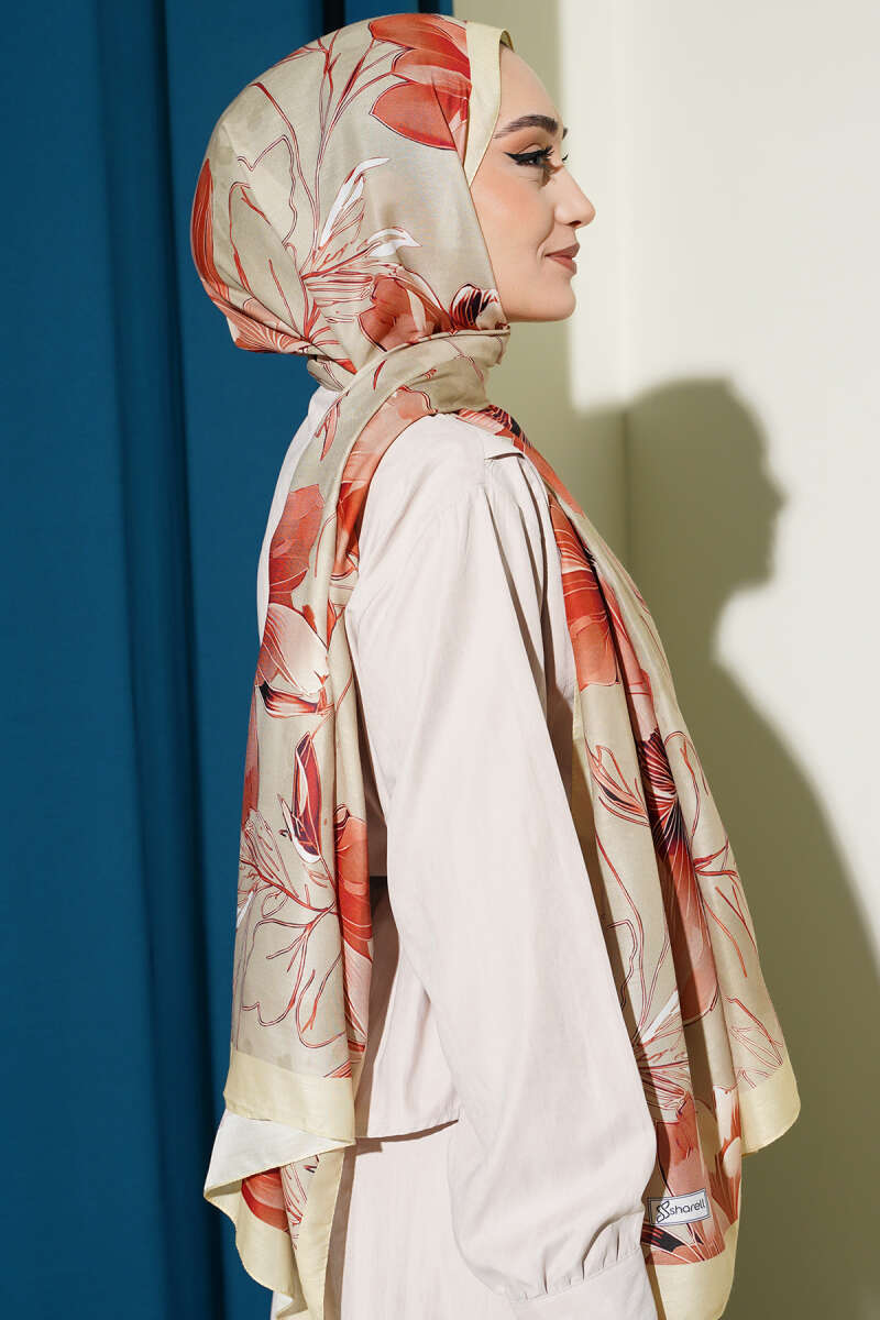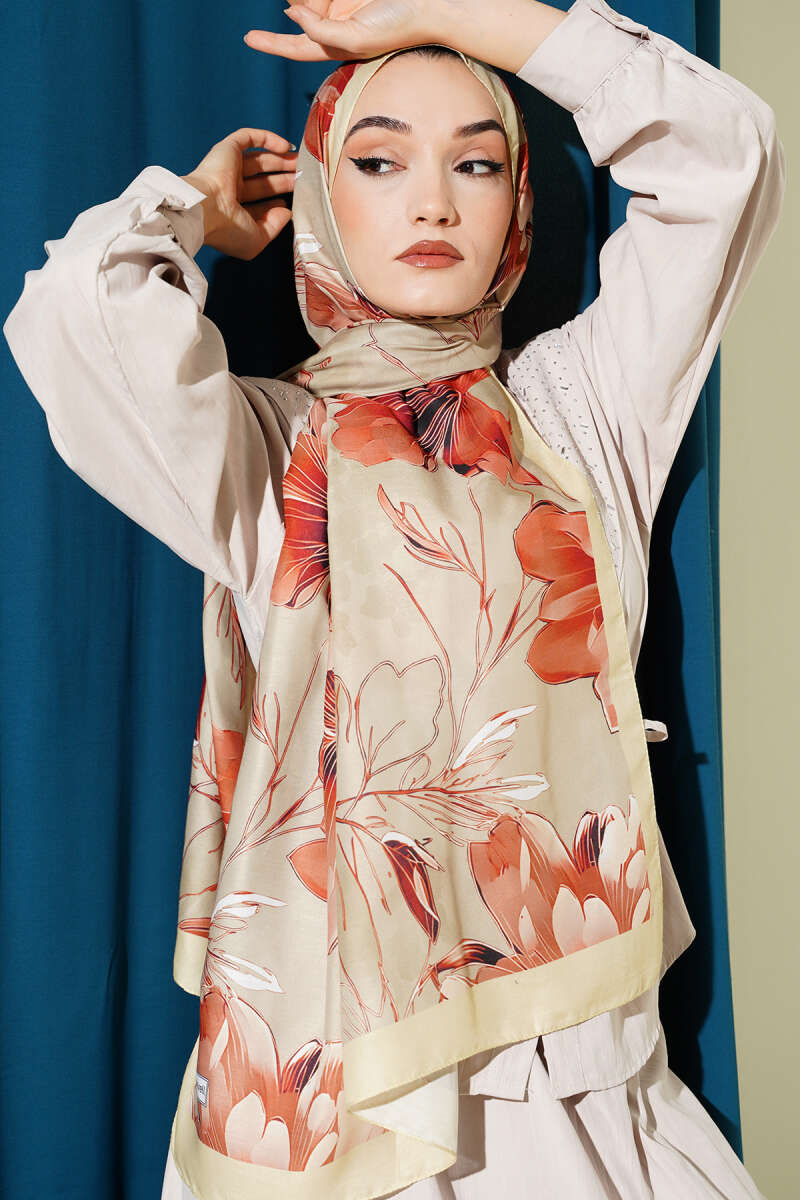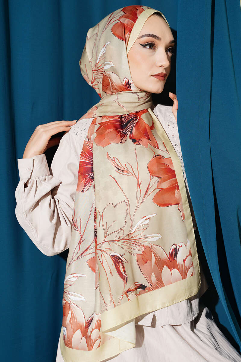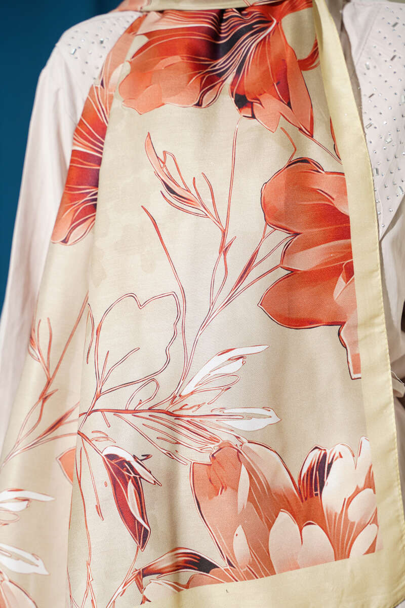 Mini Çiçek Detaylı Eşarp Kiremit