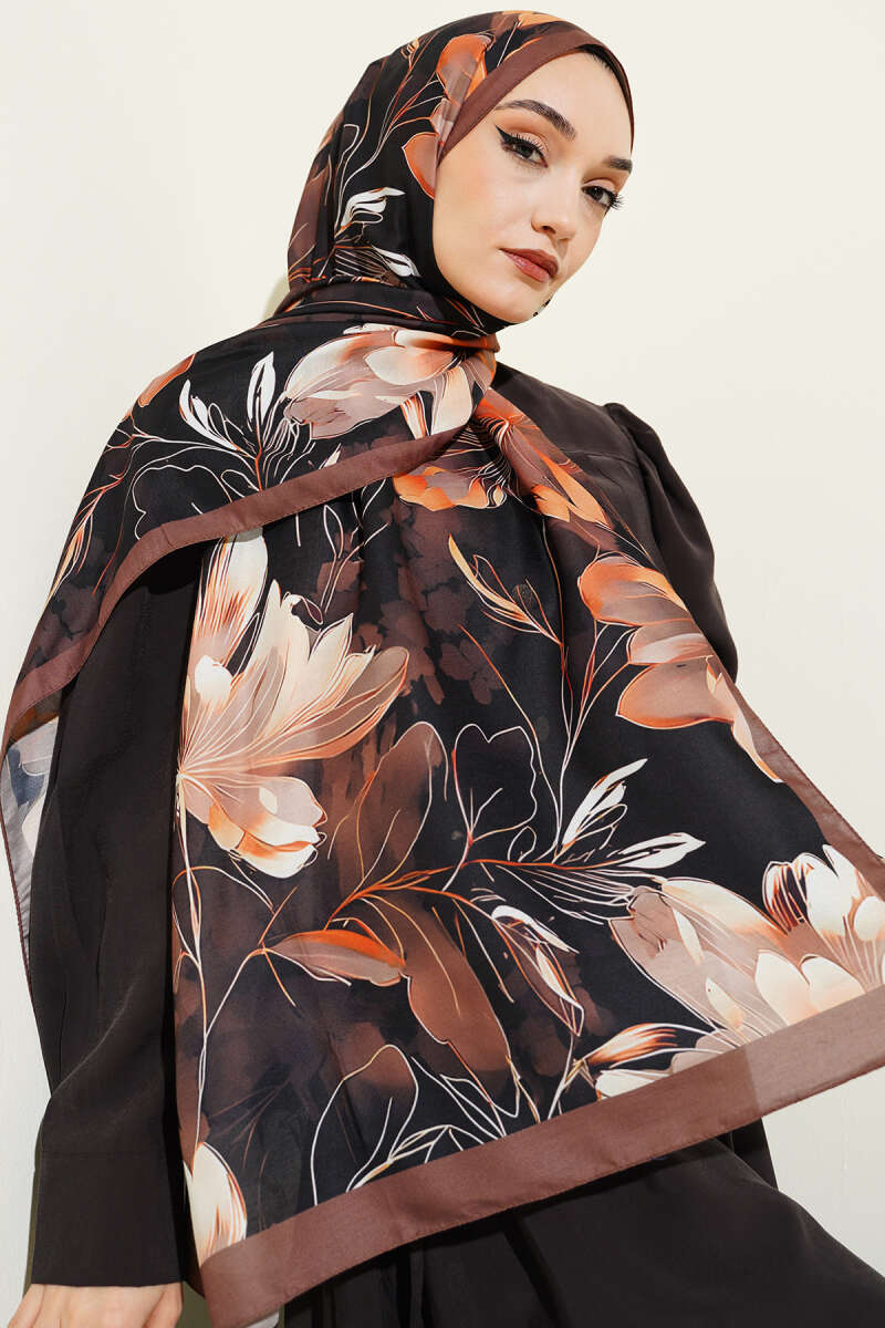 Mini Çiçek Detaylı Eşarp Siyah Bordo