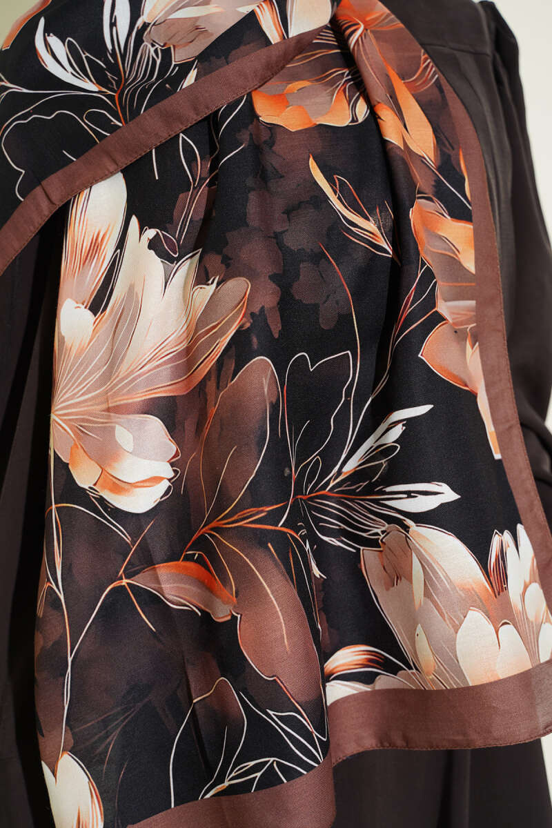 Menekşe Desen Şerit Geçişli Şal Siyah Kahve
