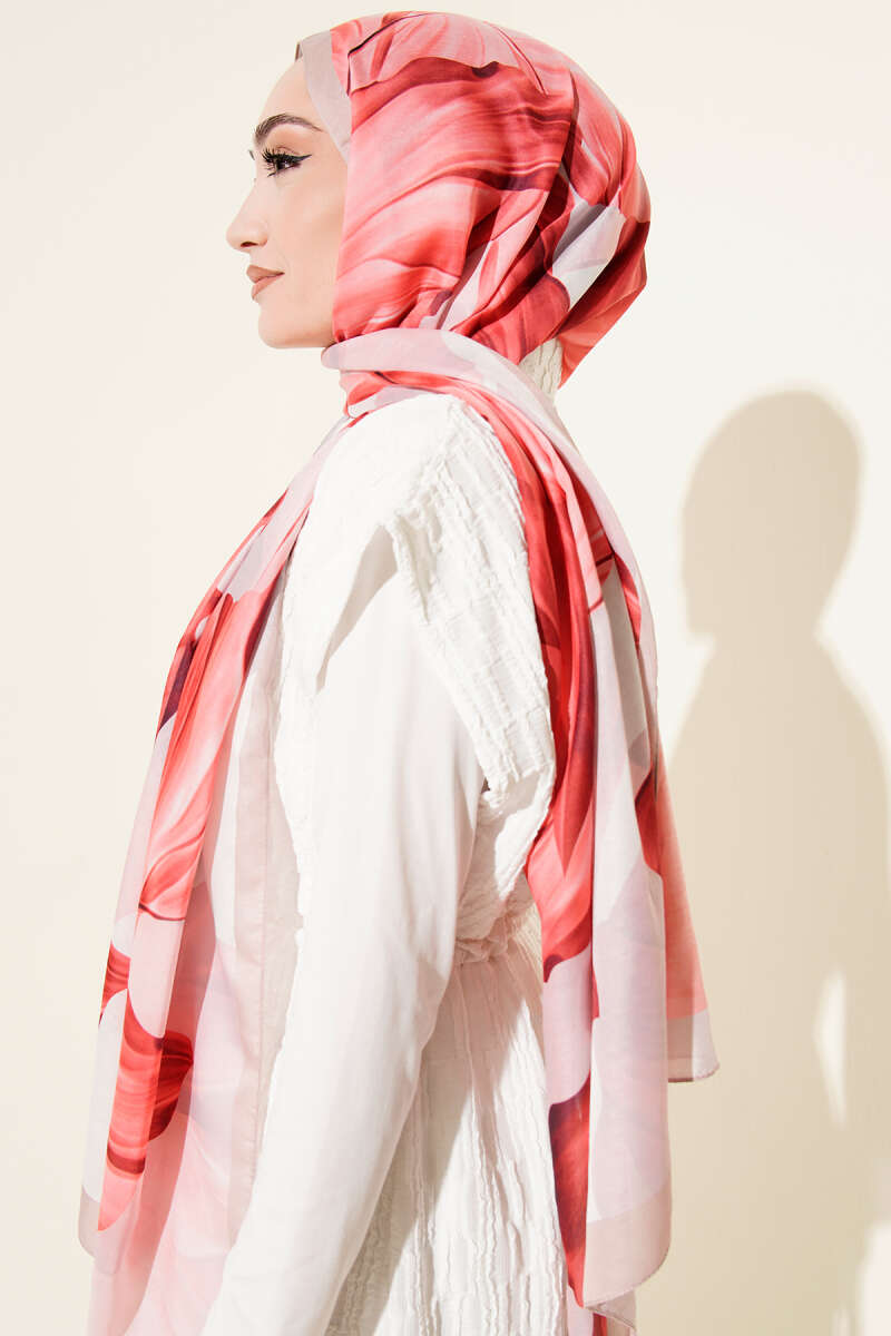 Eskiz Çiçek Desen Eşarp Camel