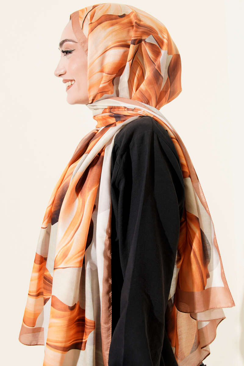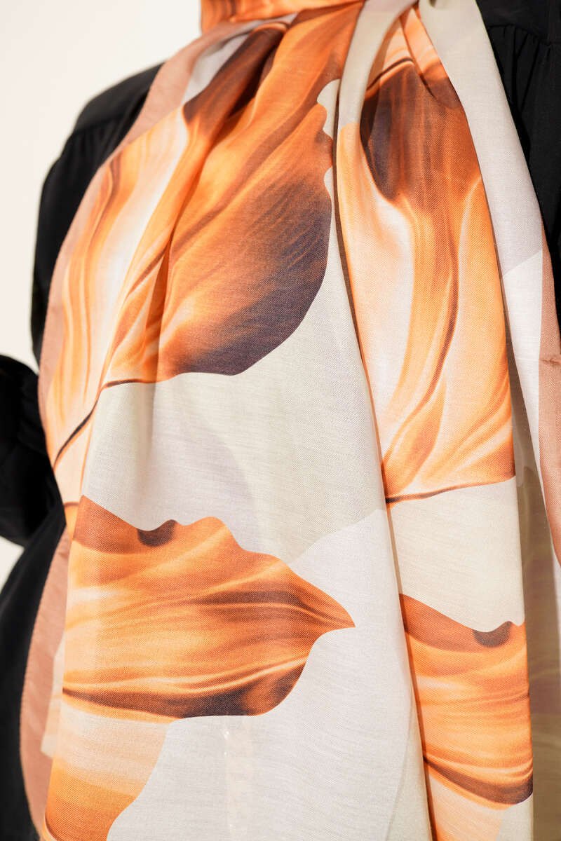 Eskiz Çiçek Desen Eşarp Camel