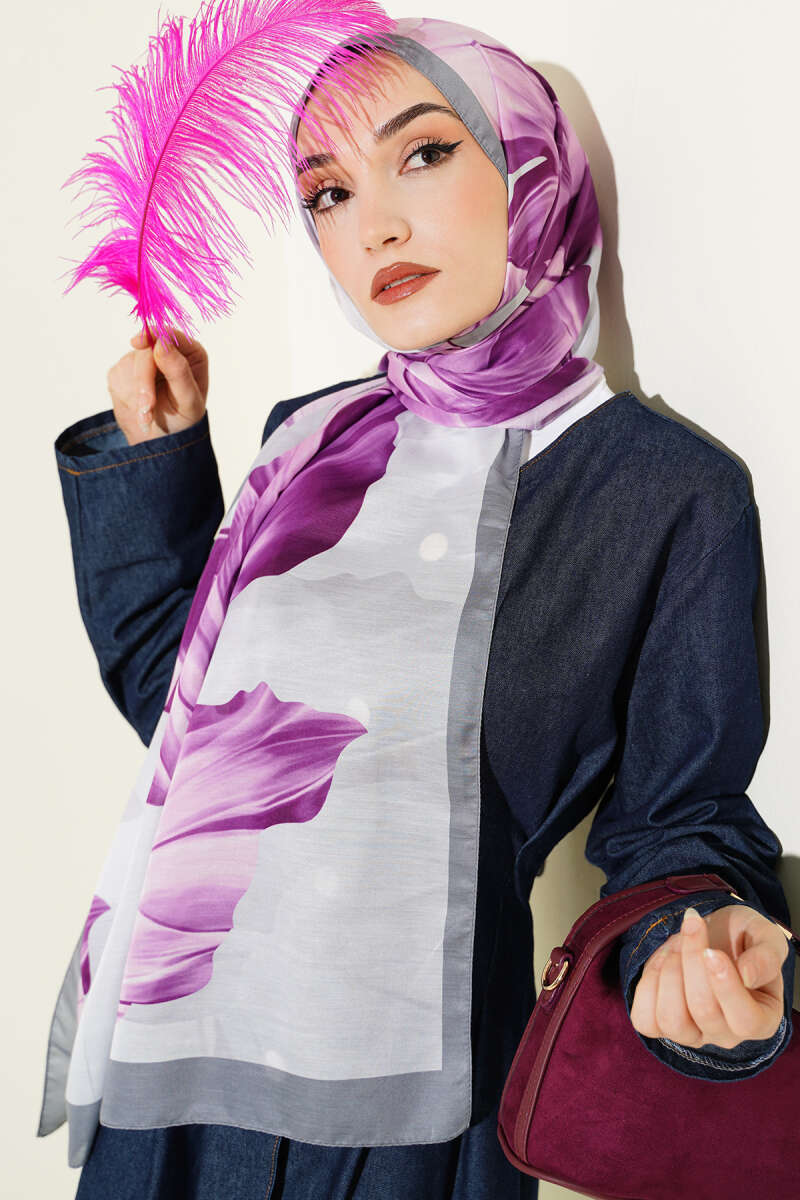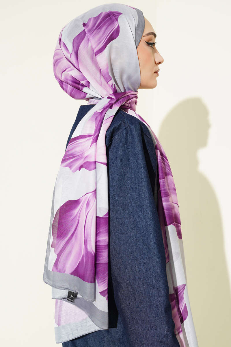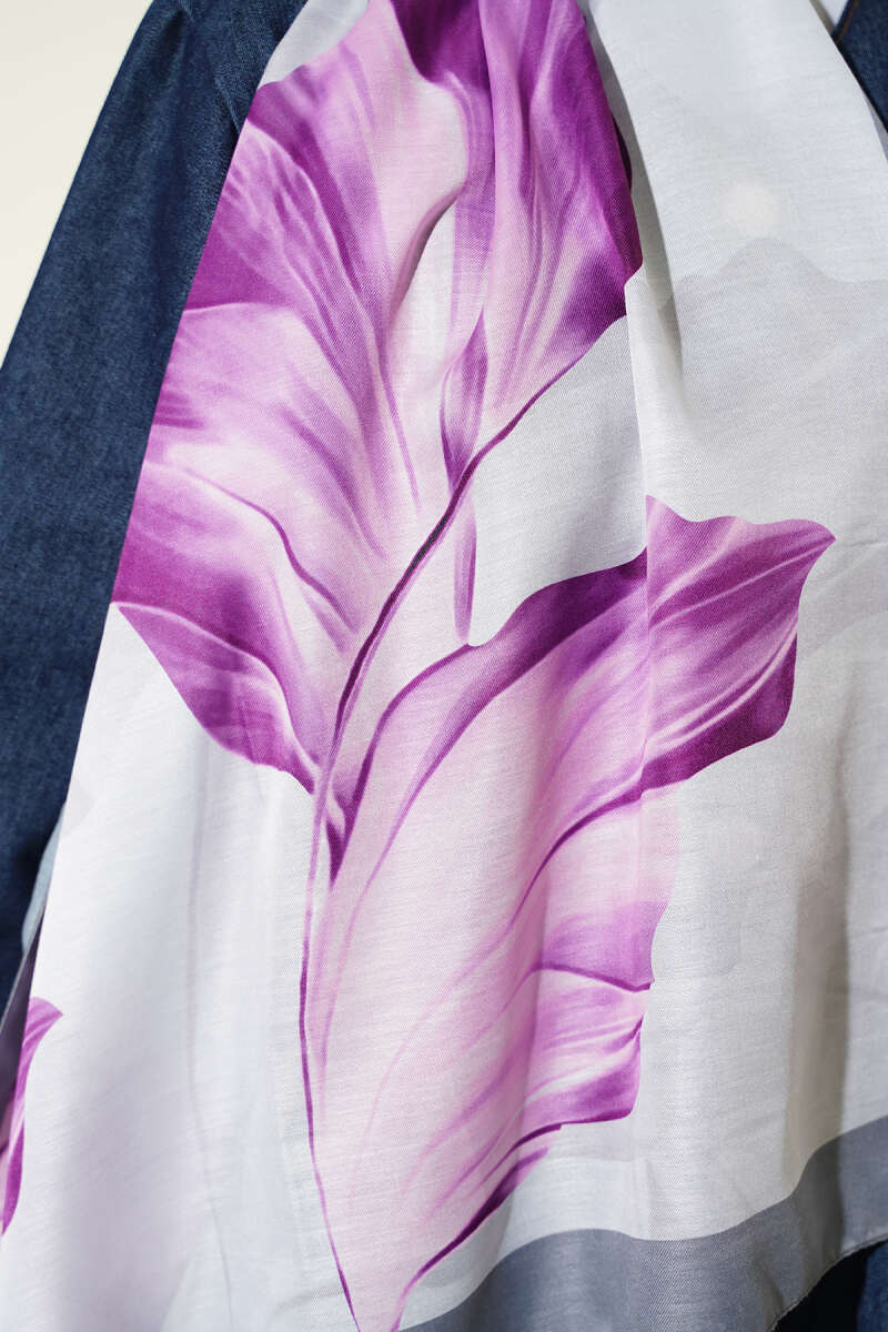 Flowers Bambu Kraş Eşarp Antrasit