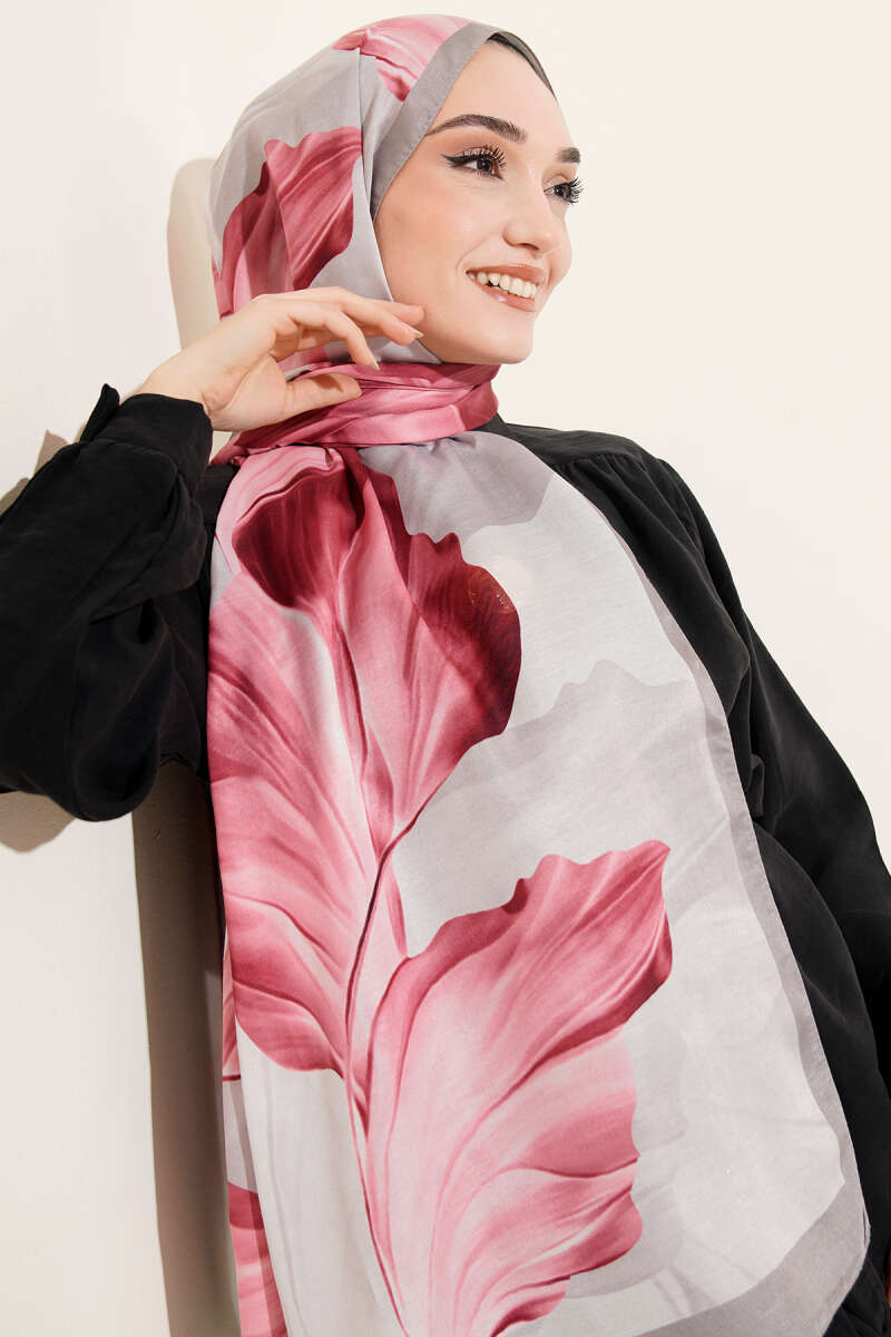 Eskiz Çiçek Desen Eşarp Füme