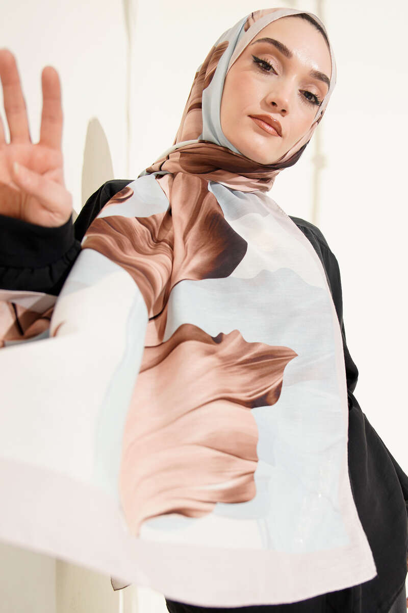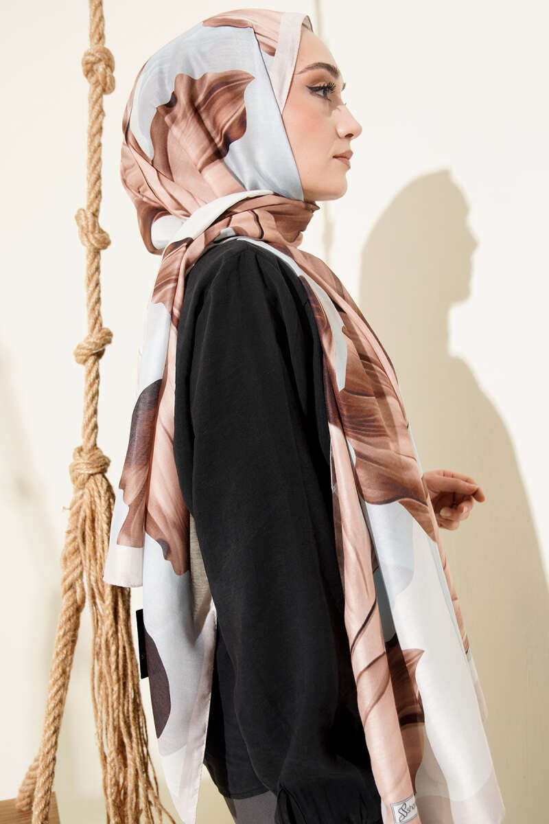 Çiçekli Şeritli Bambu Kraş Eşarp Gri