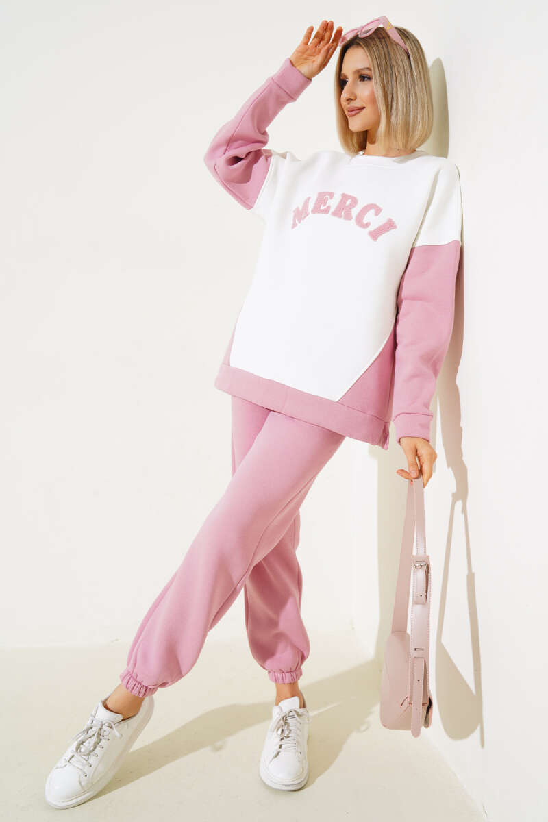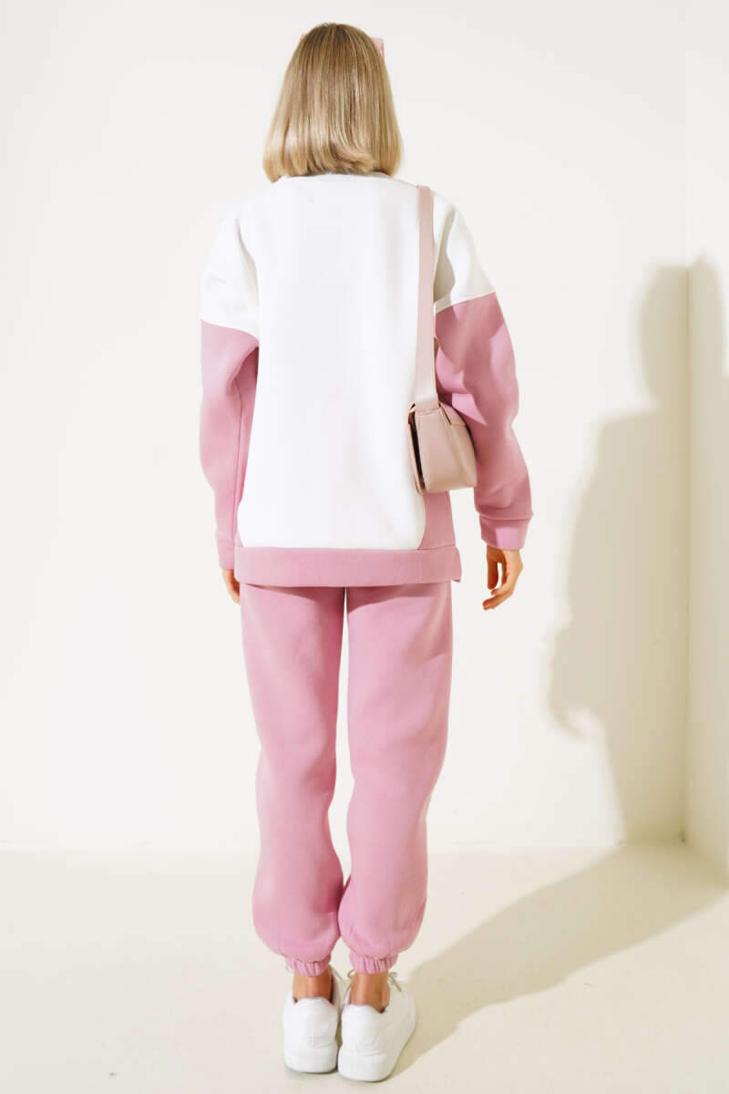 Kapşonlu Kiraz Baskılı Sweatshirt Pembe
