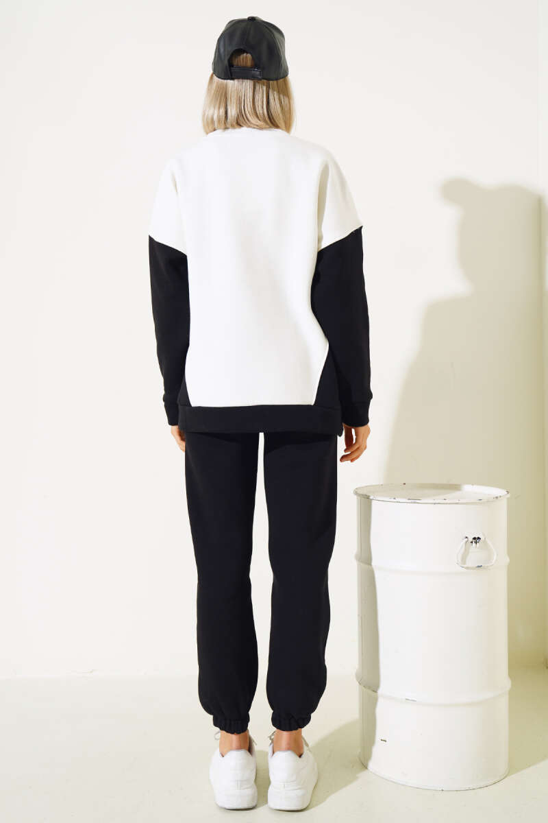 Yıldız Baskılı Kapüşonlu Şardonlu Sweat Siyah
