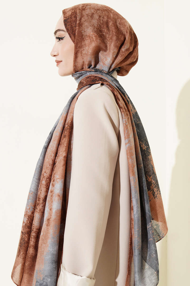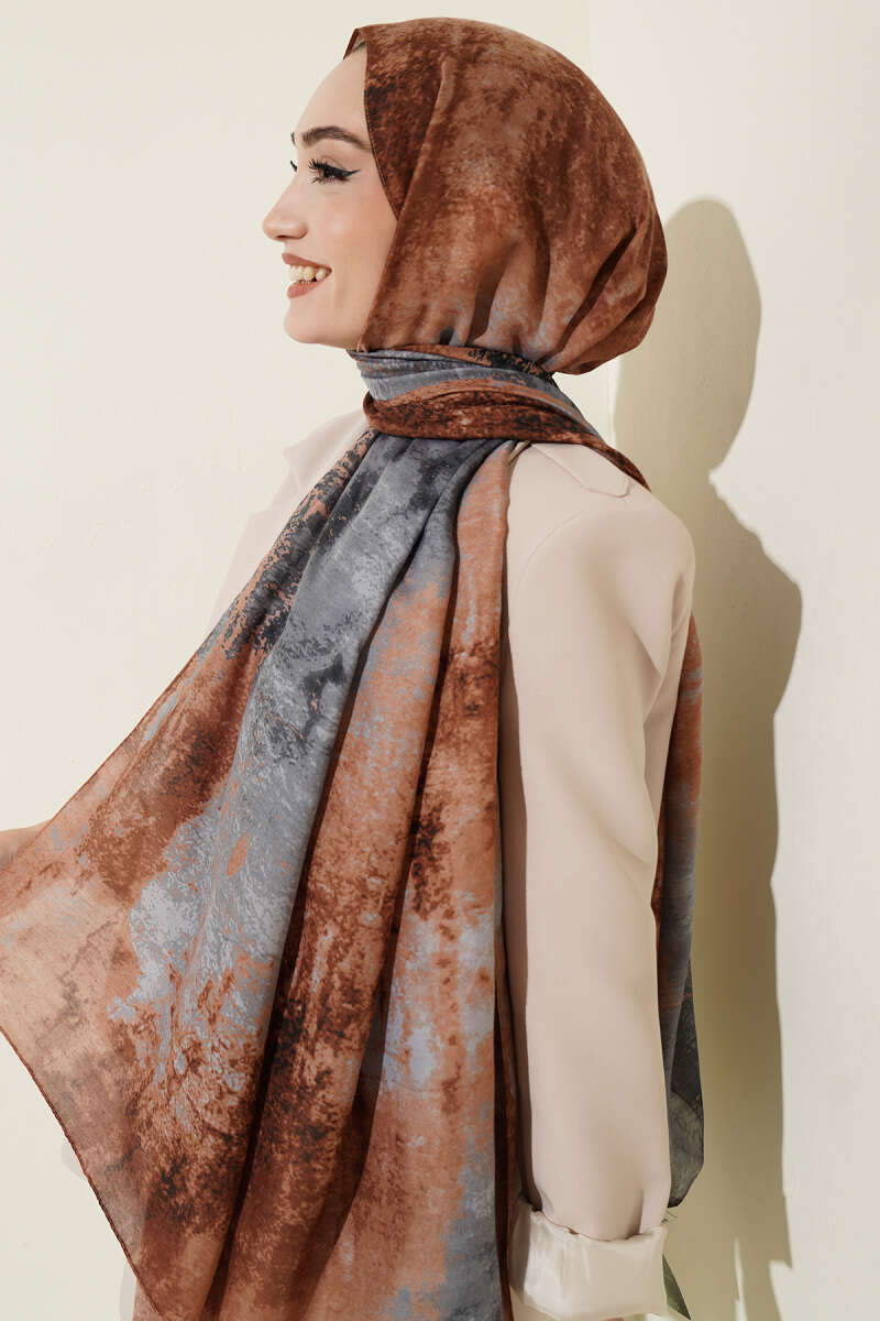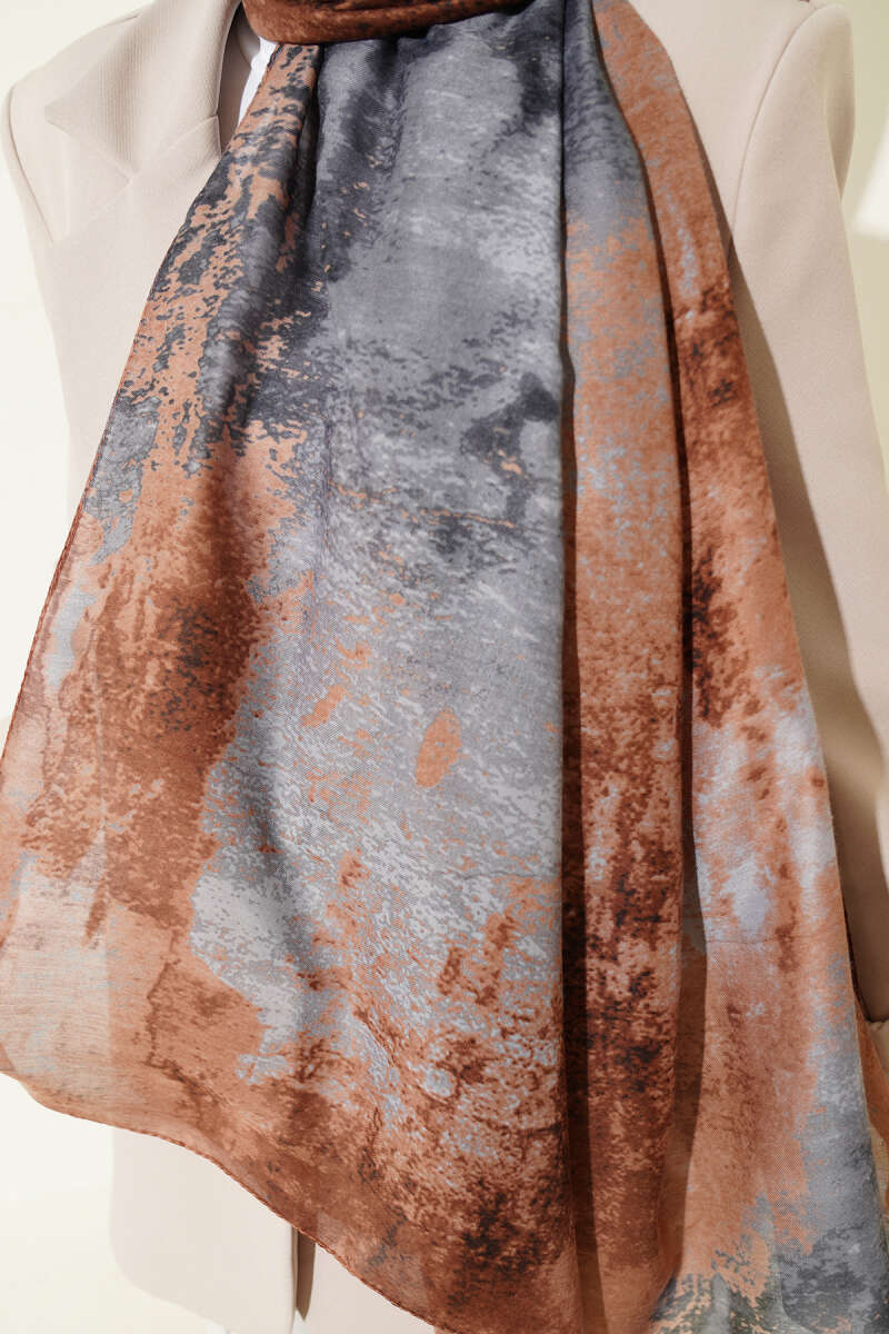 Mermer Desenli Modern Şal Kahve