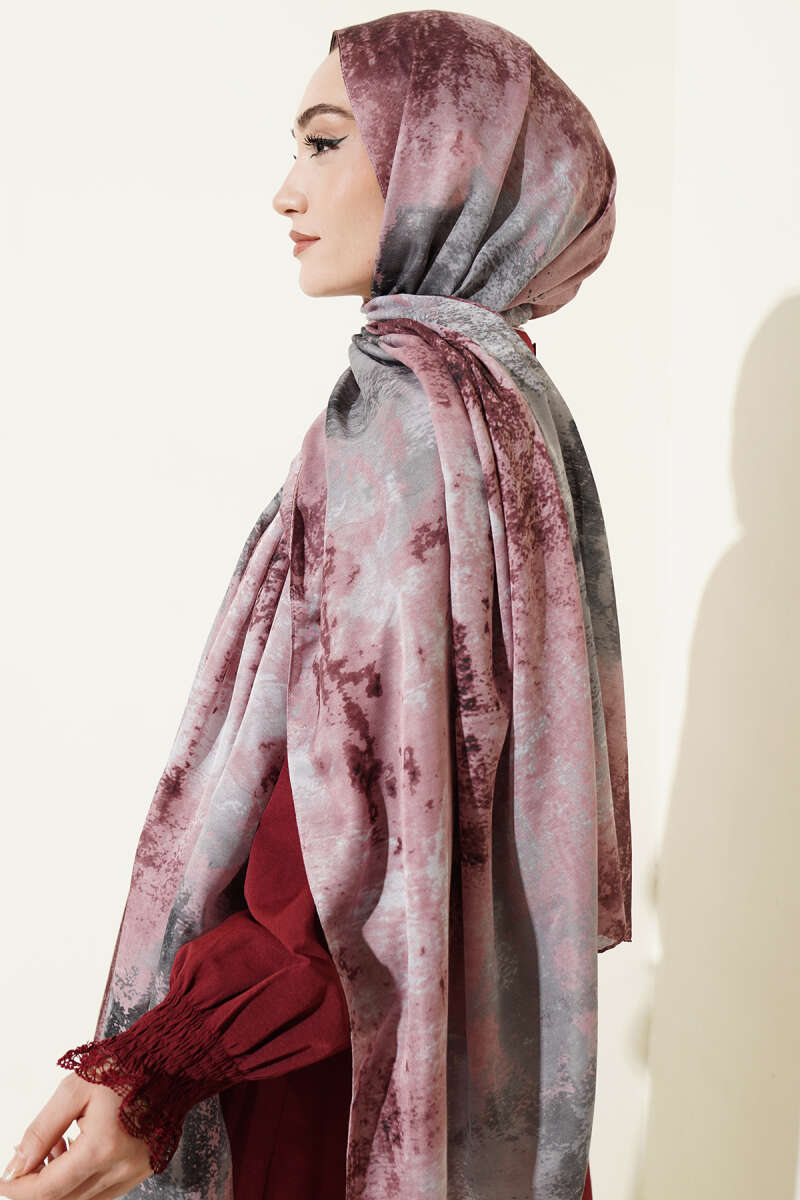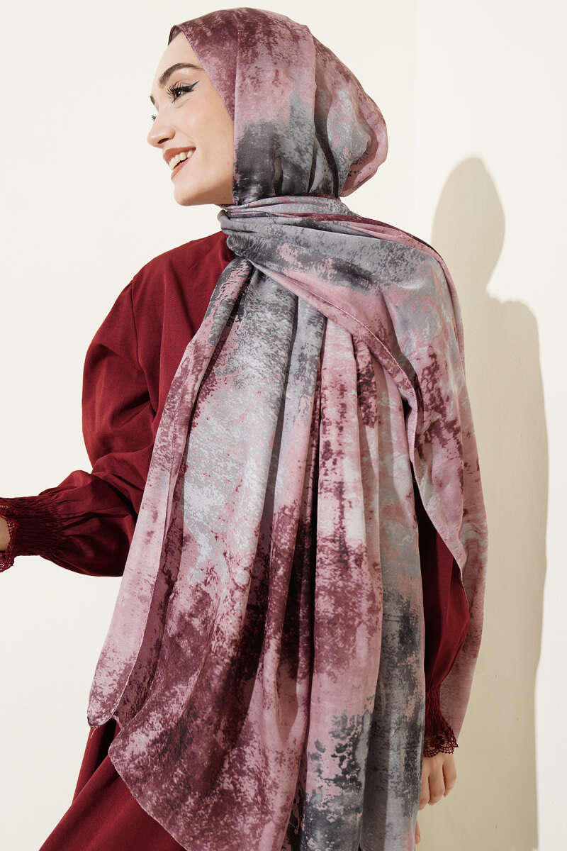 Mermer Desenli Modern Şal Gül Kurusu