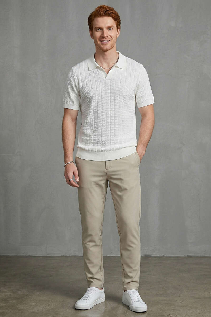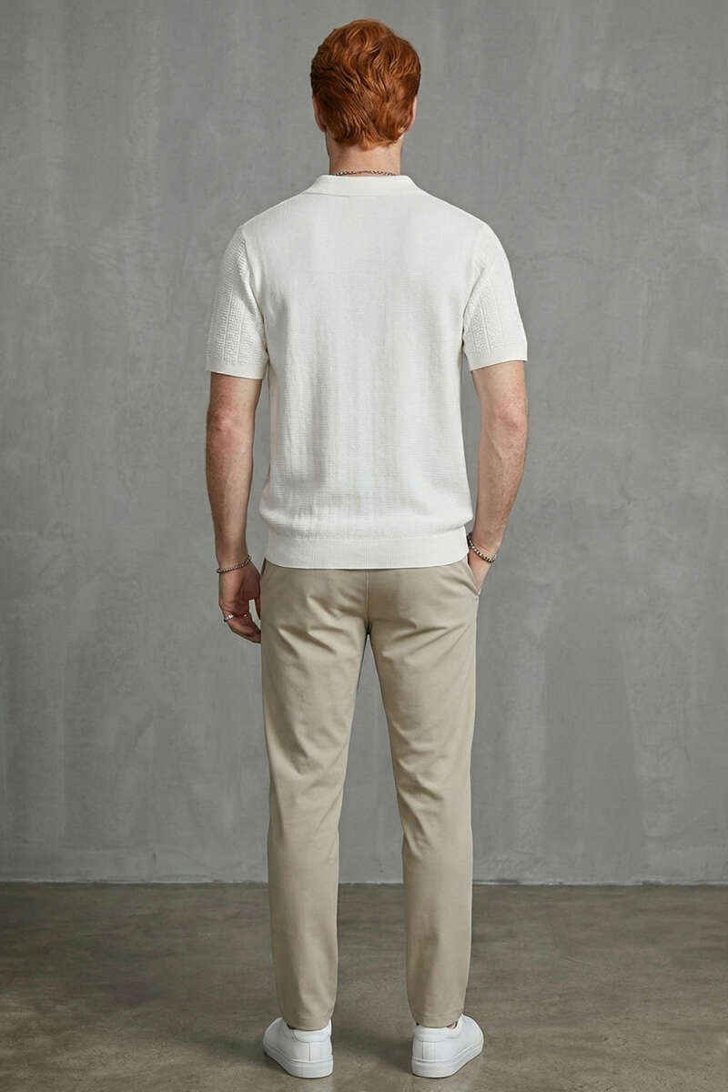 Slim Fit Yaka Düğmeli Erkek T-shirt Füme