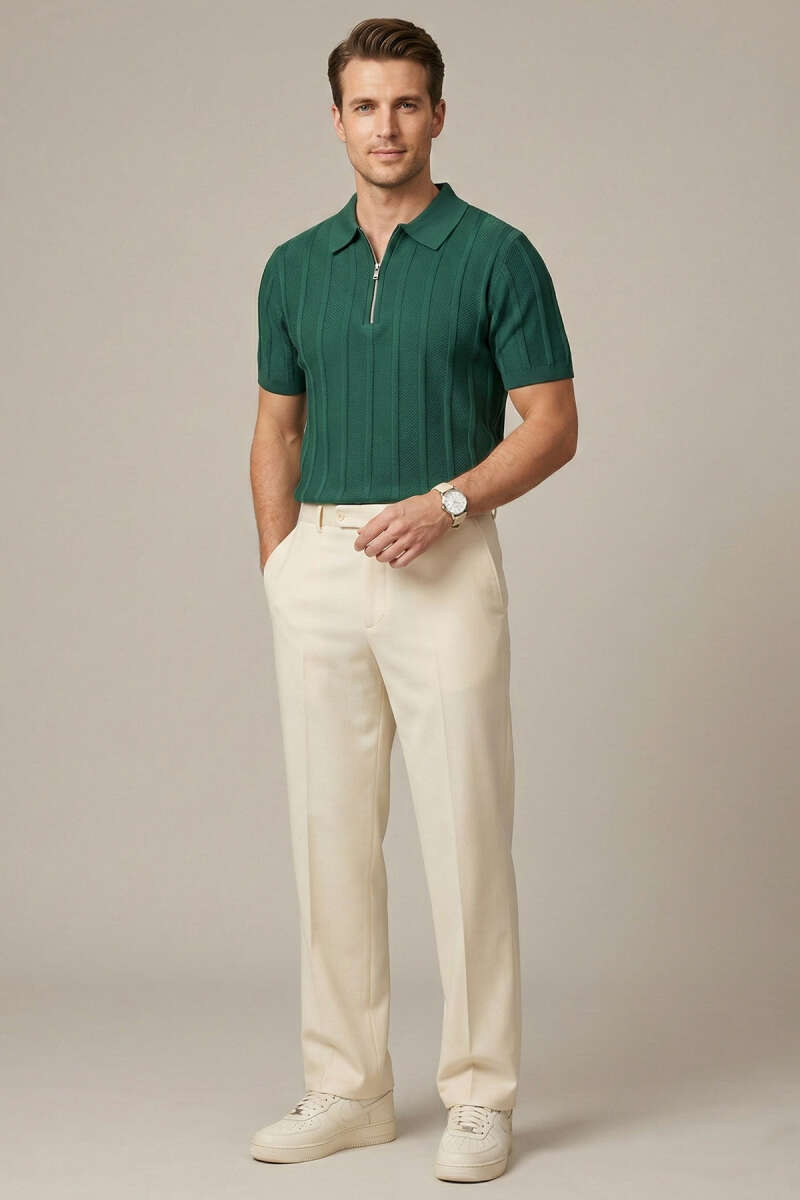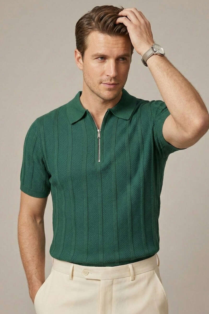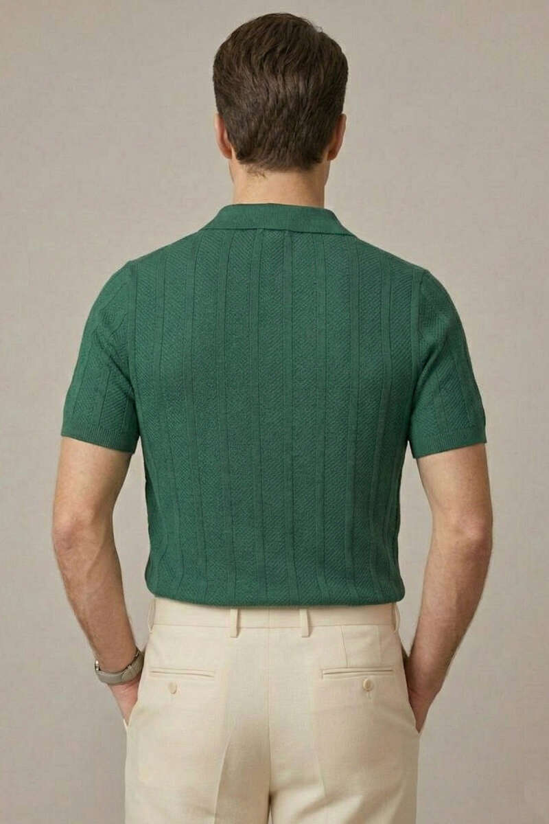Merserize Açık Polo Yaka Erkek T-shirt Haki