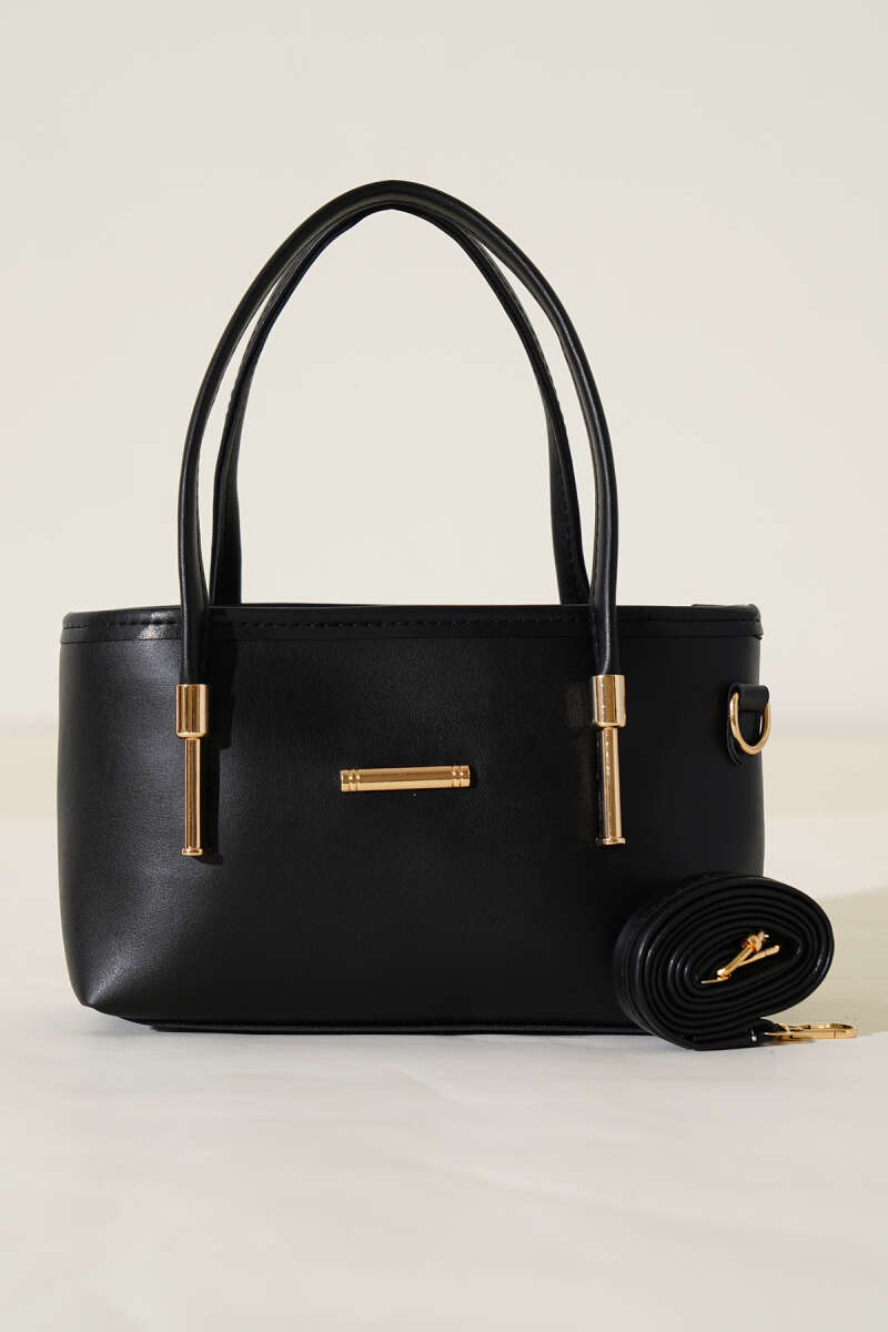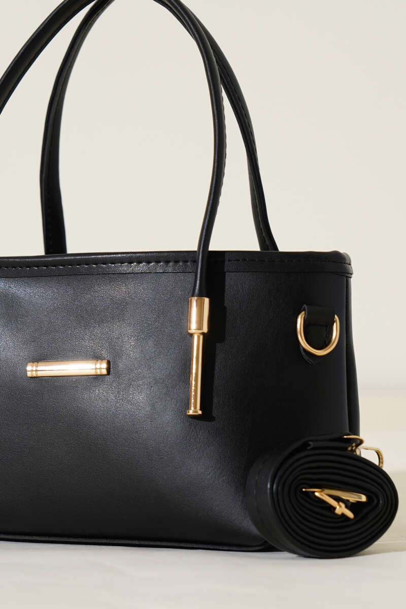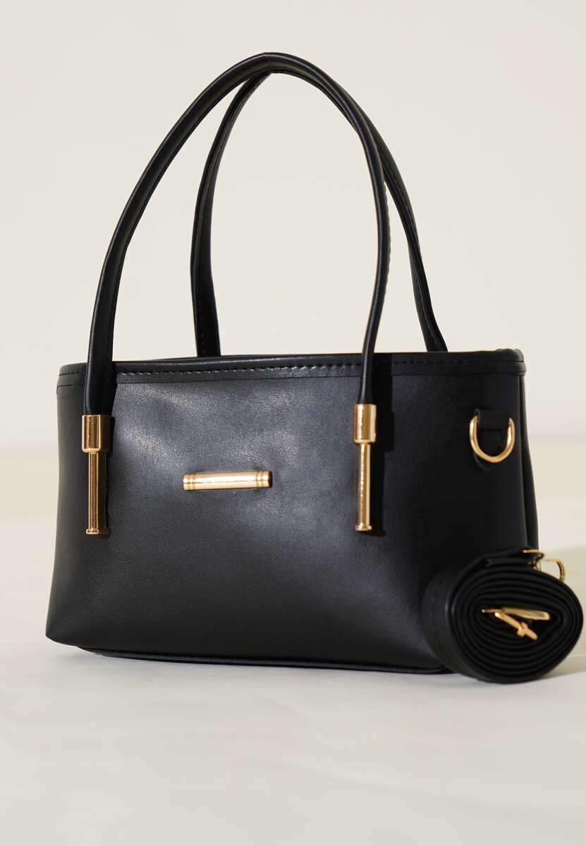 Metal Arma Detaylı El Çantası Siyah