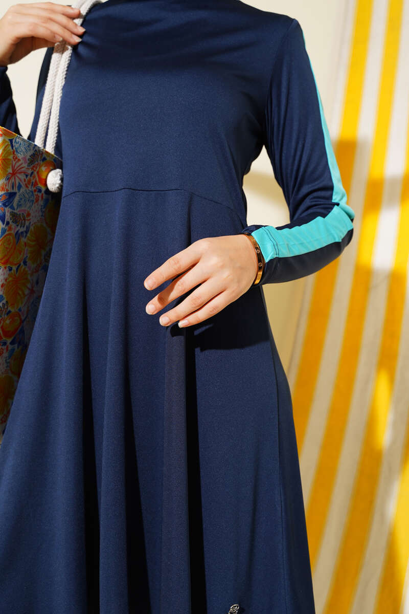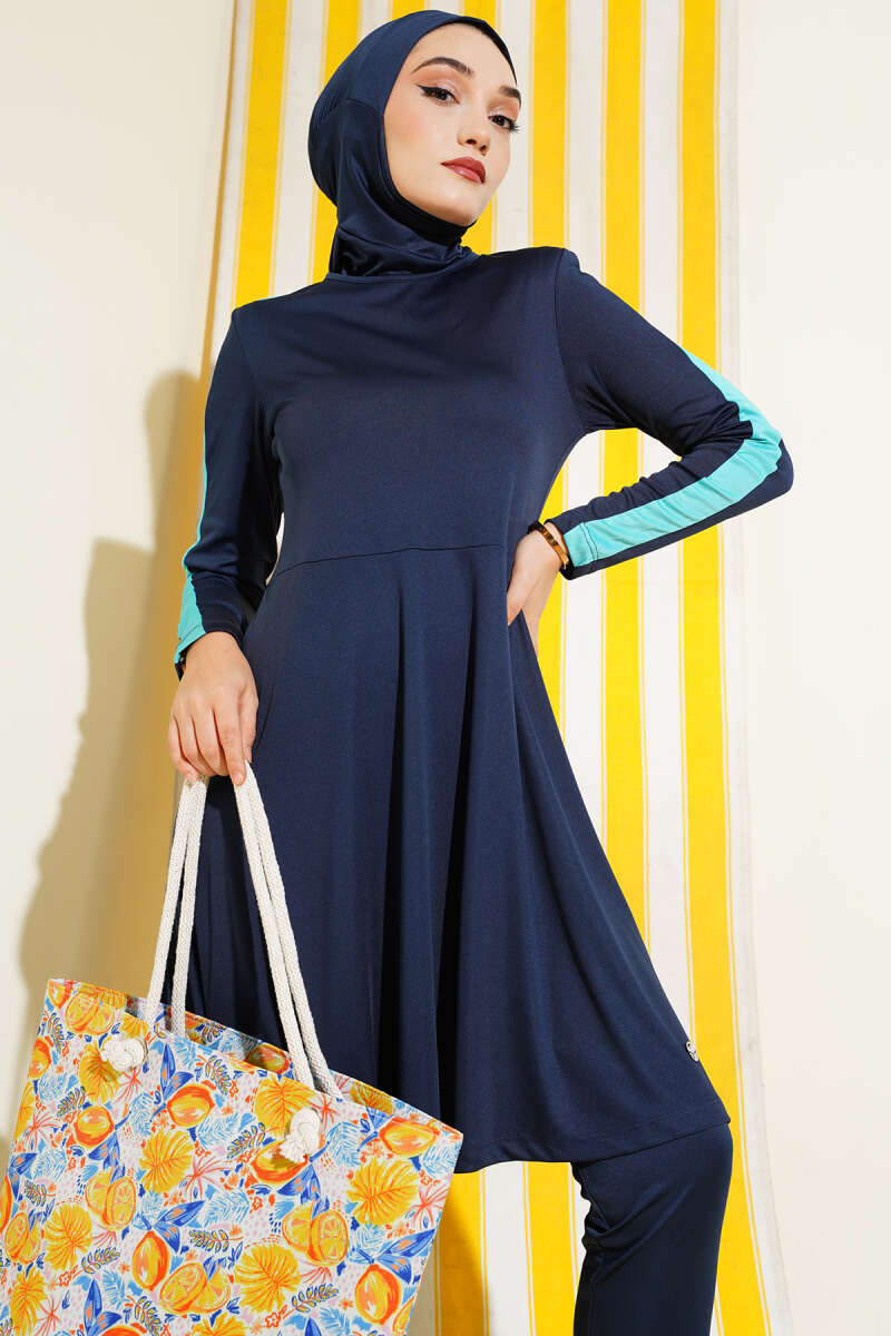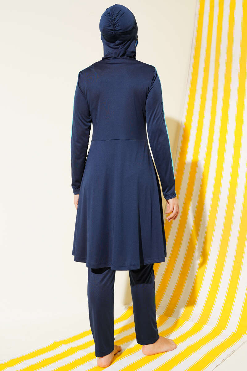 Metal Armalı Likralı Tesettür Mayo Koyu Lacivert