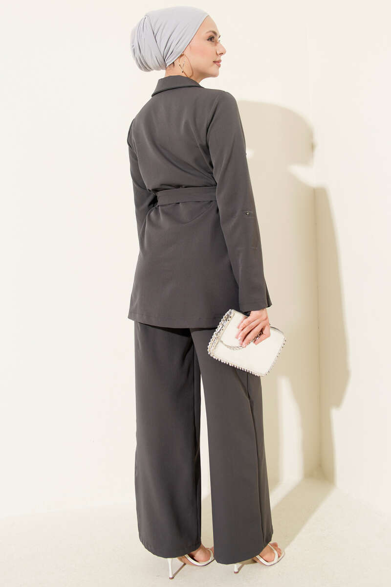 Taşlı Bel Tünelli Tunik İkili Takım Kahve