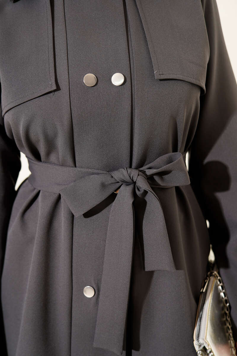 Gold Tokalı Pensli Tencel Elbise Kahve