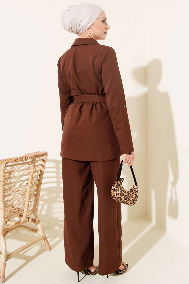 Taşlı Bel Tünelli Tunik İkili Takım Kahve