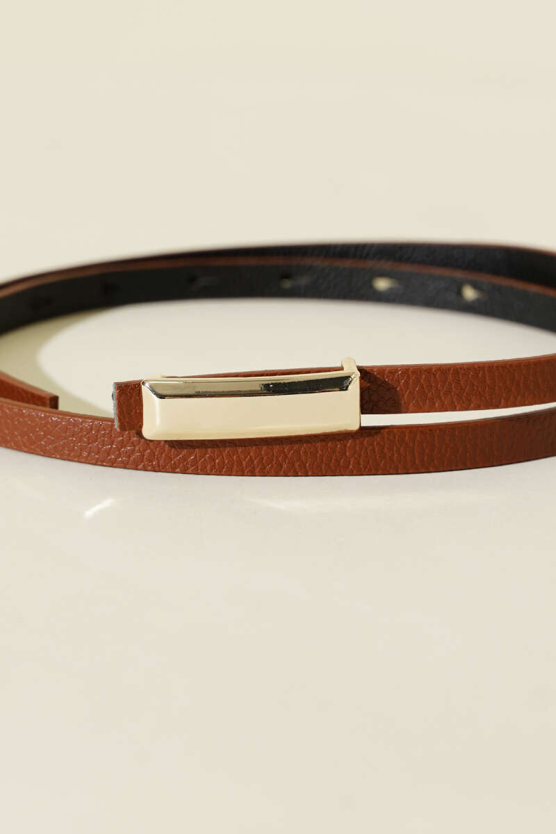 Metal Dikdörtgen Tokalı İnce Kemer Taba
