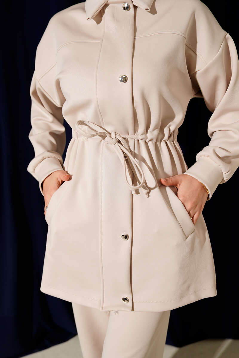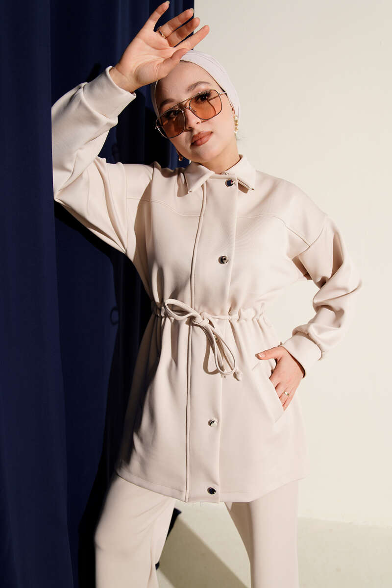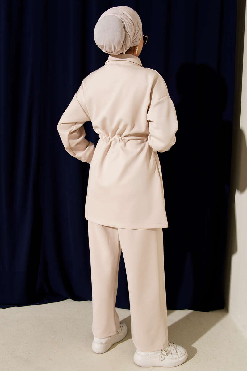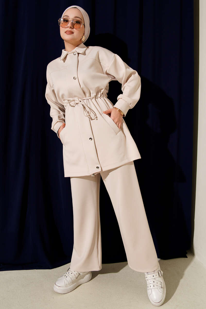 Boydan Fermuarlı Pantolonu Cepli İkili Takım Kahve