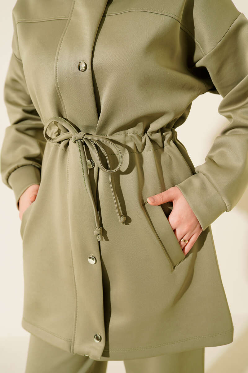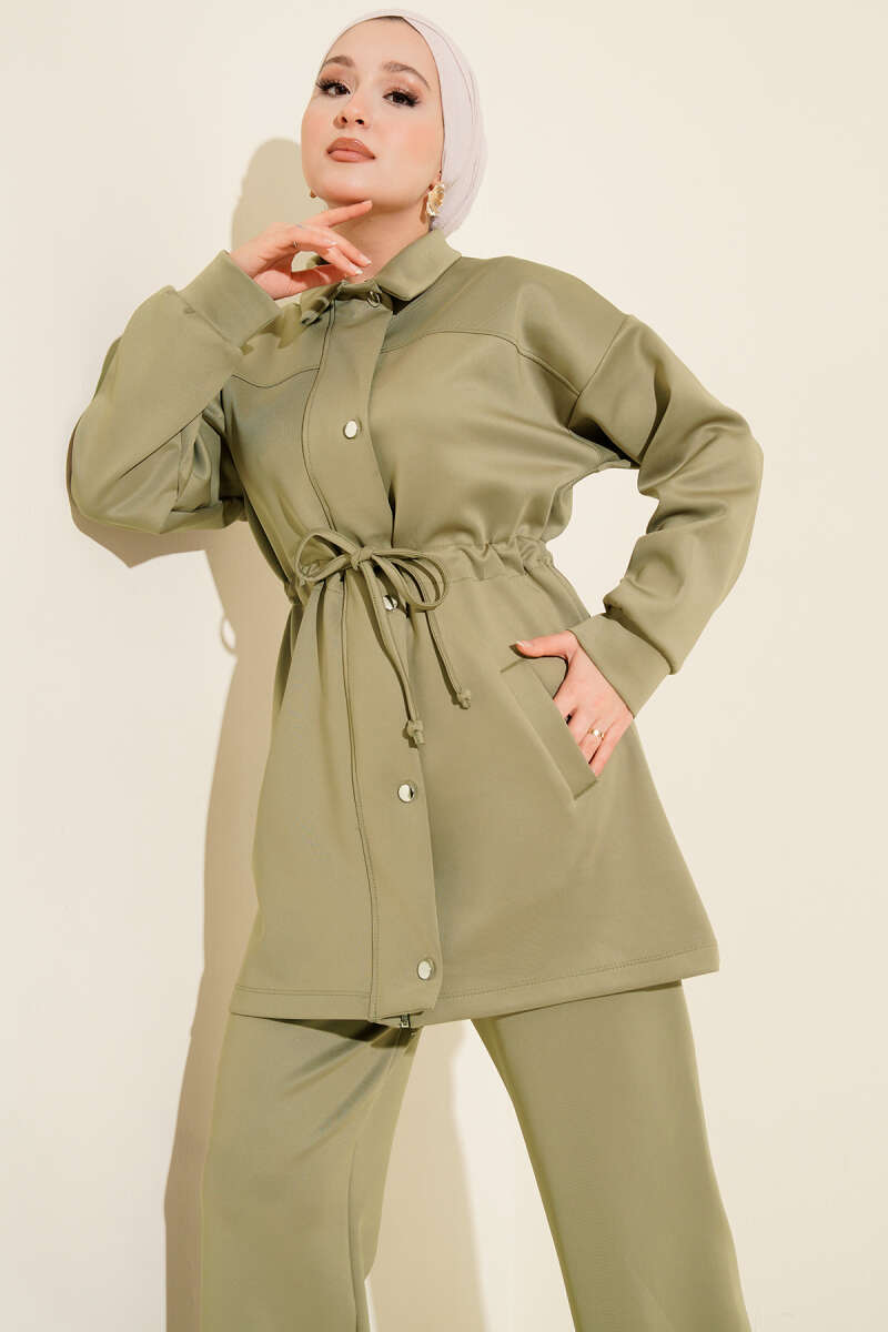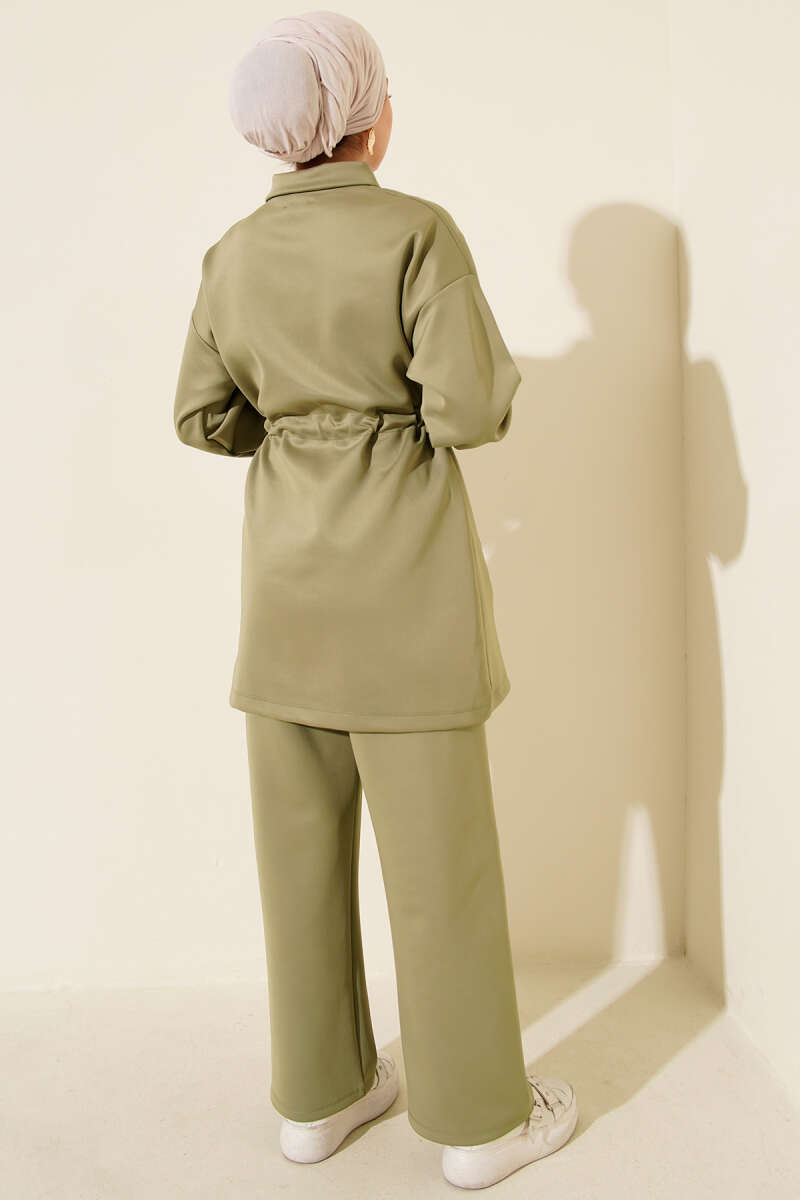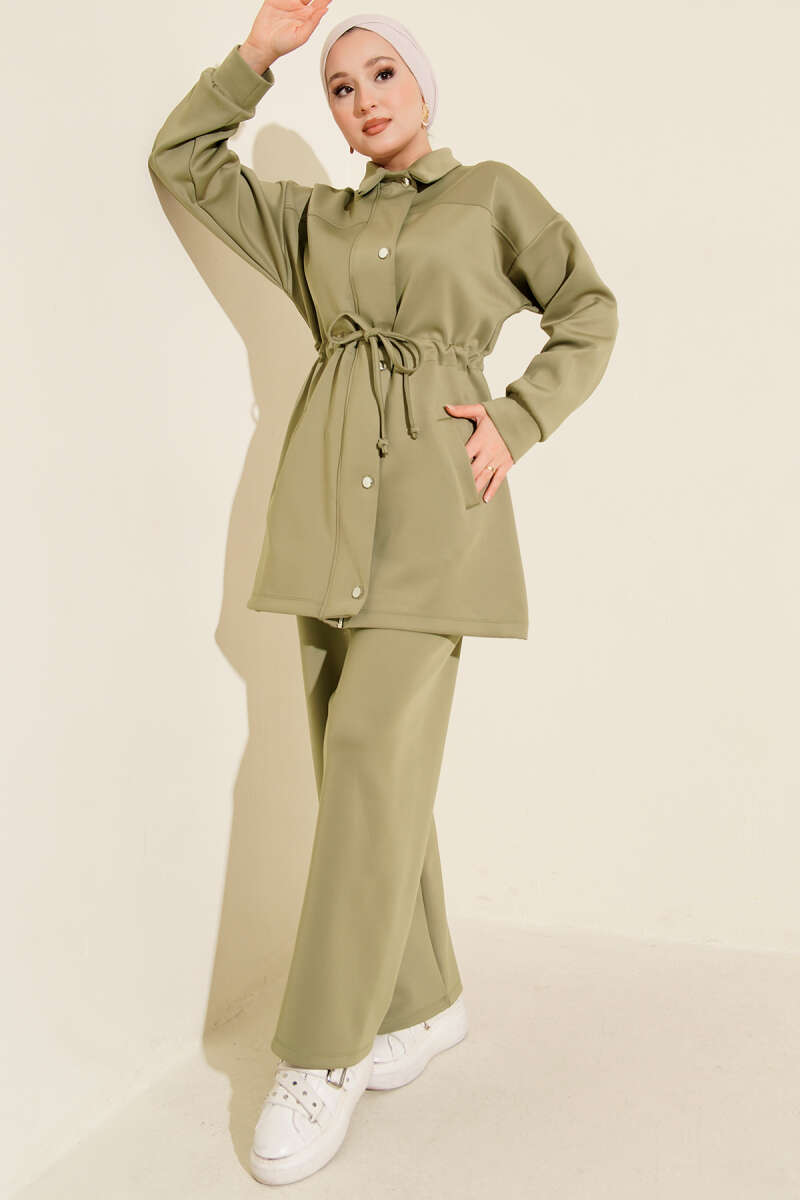 Omuzdan Bağlamalı Tencel İkili Takım Haki