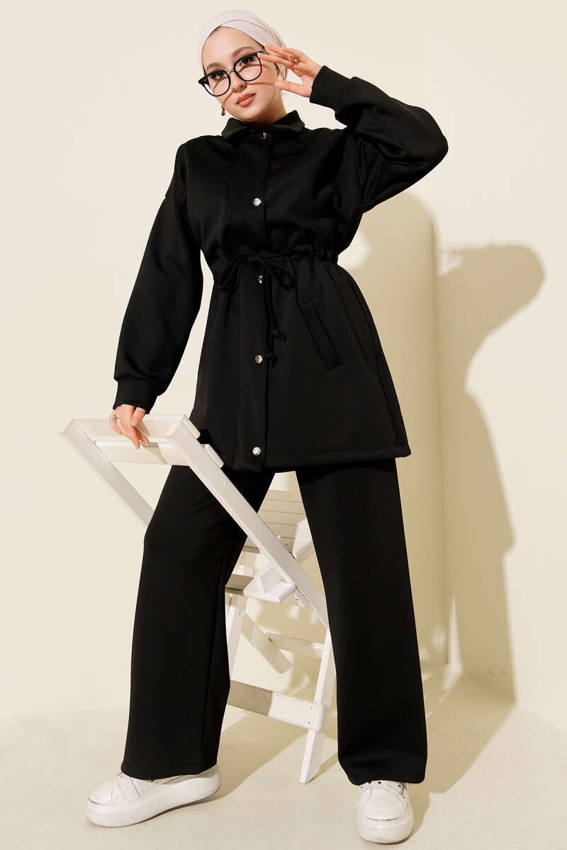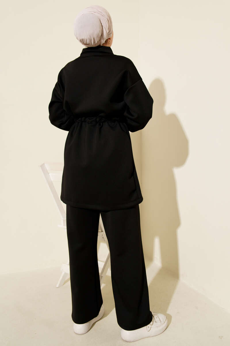 Çımalı Dar Paça Scuba Pantolon Siyah